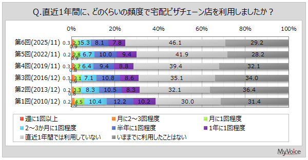 マイボイスコム株式会社(東京都千代田区、代表取締役社長:高井和久)は、6回目となる『宅配ピザチェーン店』に関するインターネット調査を2025年11月1日~7日に実施しました。