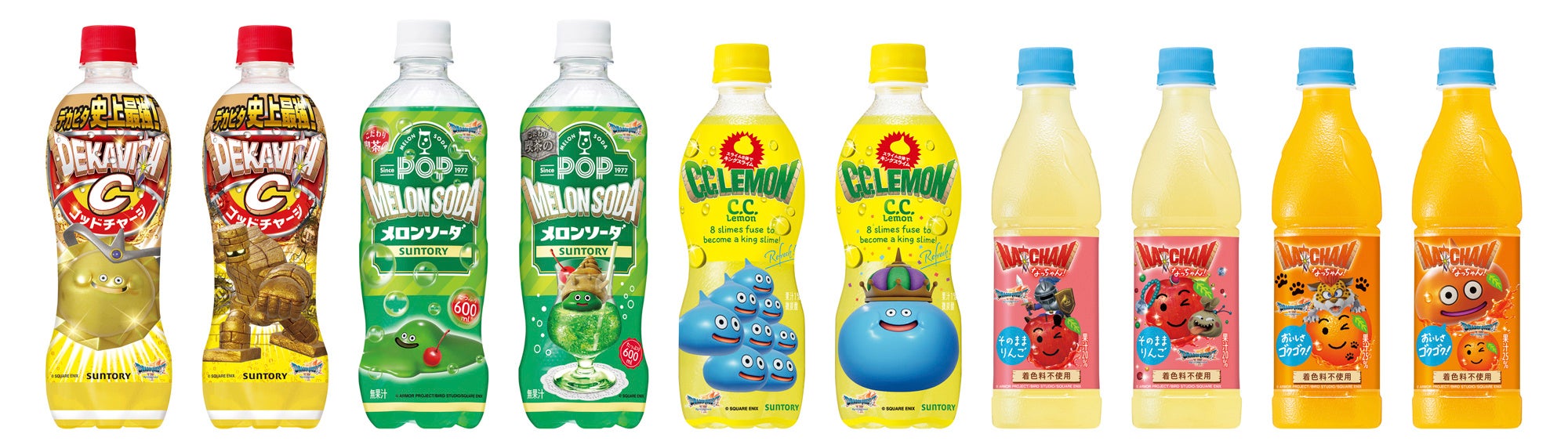 炭酸飲料「C.C.レモン」「デカビタC」「POPメロンソーダ」や果汁飲料「なっちゃん」は、お子様から大人まで広くご支持をいただいているサントリーの人気ドリンクです。このたび上記4つのブランドにおいて、『ドラゴンクエストVII Reimagined』とのコラボレーションを実施することで、これまで以上に、多くのお客様にご愛飲いただきたいと考えています。