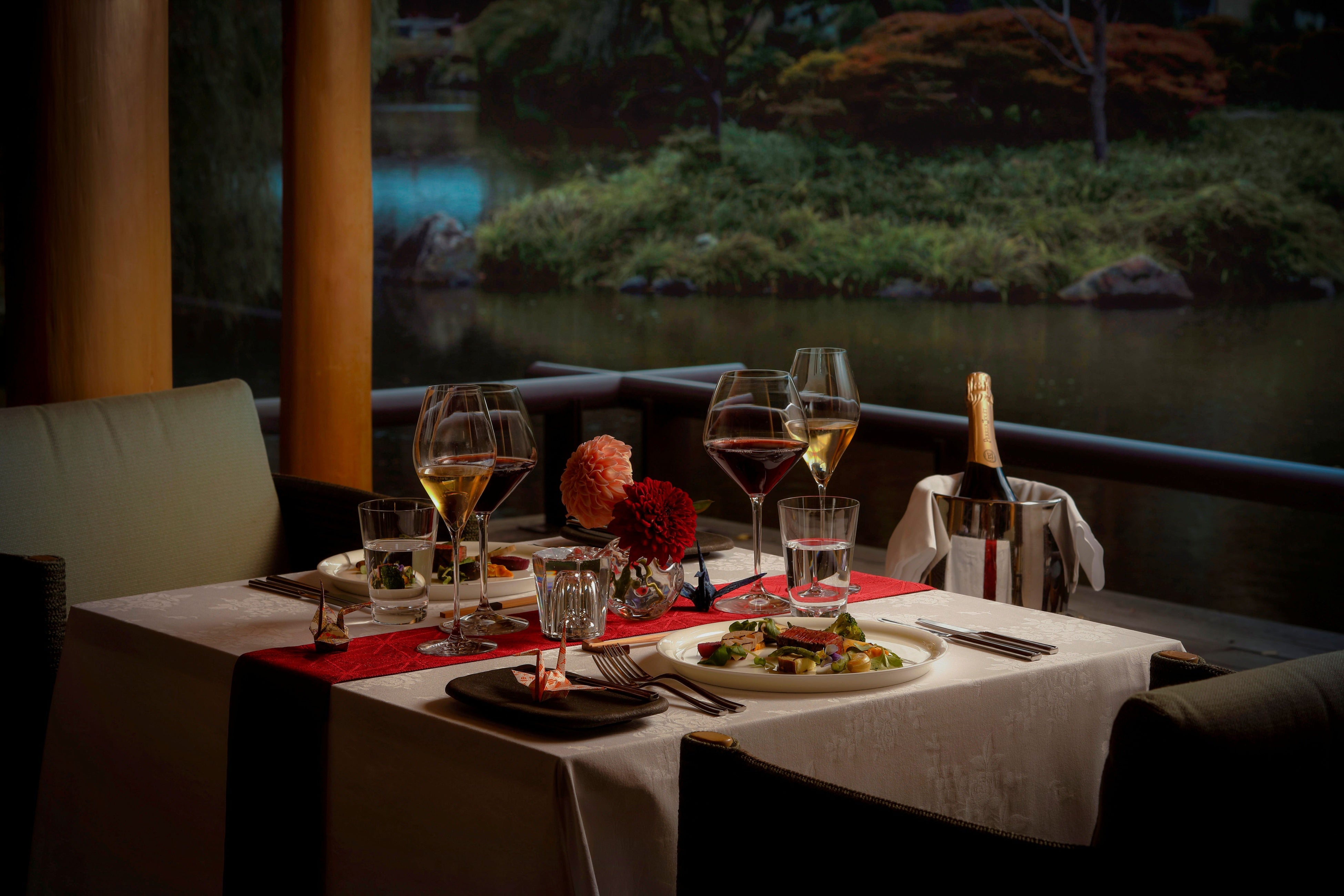 京都の旬の恵みをご堪能いただける7コースのディナーメニューは、ゲストのお好みに合わせてシェフがオリジナルにカスタマイズしてご提供。フラワーアレンジメントと2時間のノンアルコールフリーフロー付きのお祝いにぴったりのプランです。(ワインペアリング付き:+40,000円/2名様)
