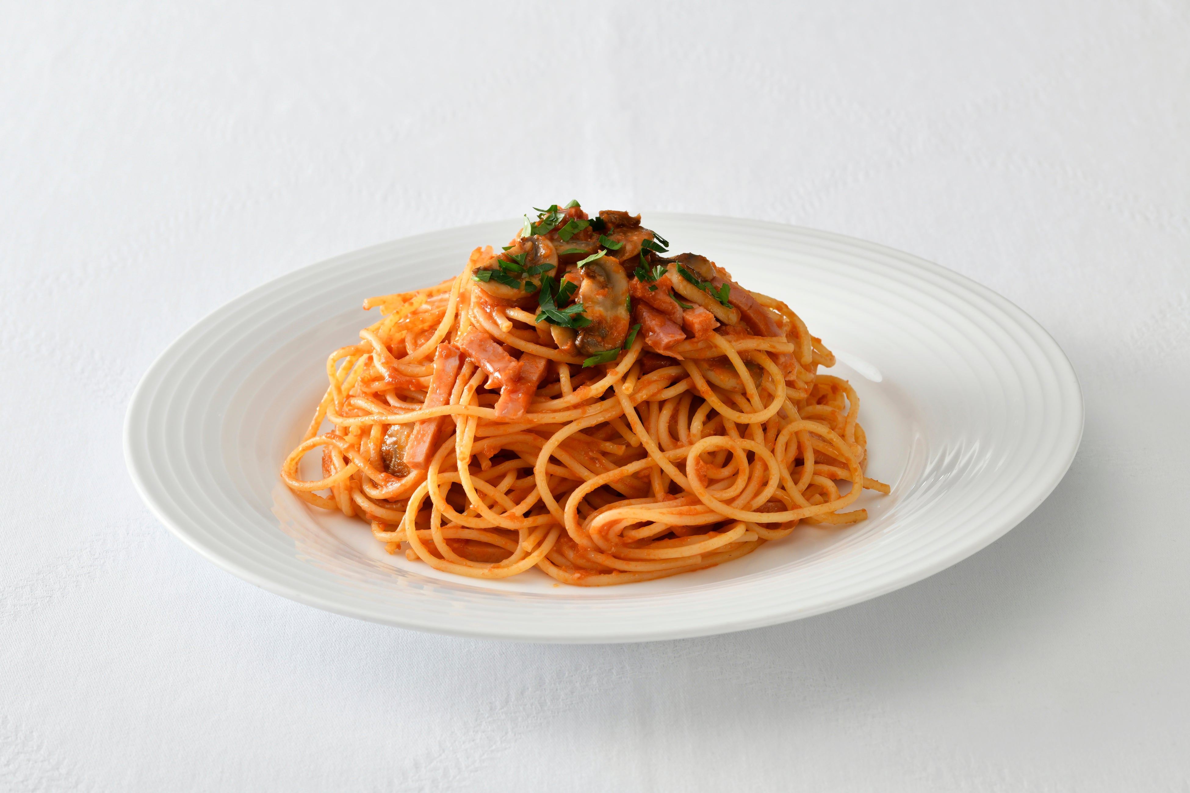 2代目総料理長 入江茂忠が、戦後のホテルが接収されていた時代に、米兵が茹でたスパゲッティに塩、胡椒をかけ、トマトケチャップを和えたものを食べていたことをヒントに、ホテルが提供するにふさわしい一品を、とアレンジをして生み出したメニュー。ケチャップは使用せず、トマトが主役の風味豊かなオリジナルソースは、野菜の甘さとトマトの酸味のバランスが絶妙な味わいです。