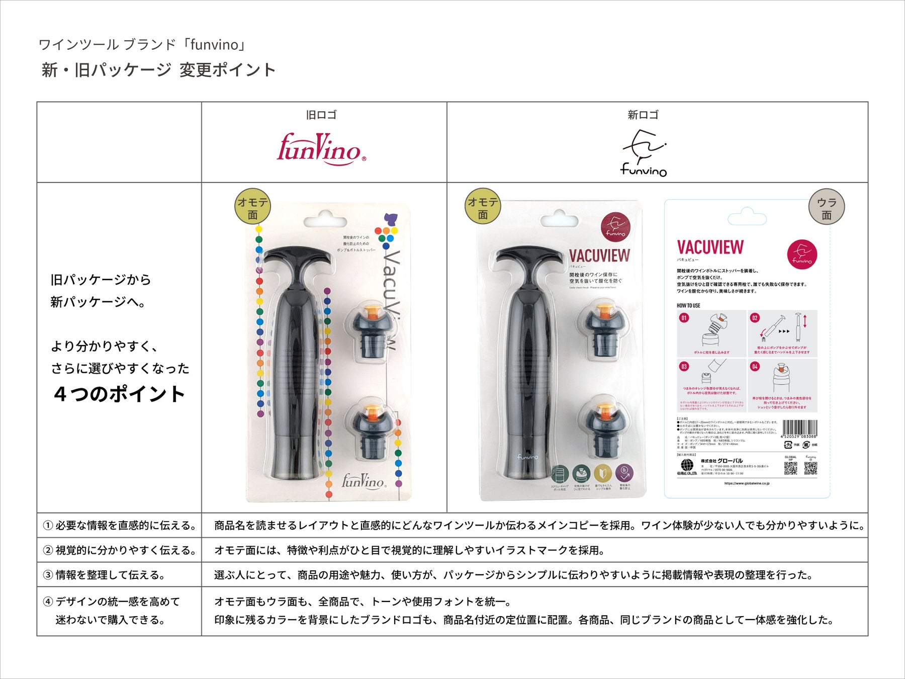ワイン関連機器の株式会社グローバル(本社:大阪市、代表取締役:和田 修)は、ワインツールブランド「funvino」(ファンヴィーノ)のブランド表現を見直し、ブランドロゴを刷新するとともに、パッケージデザインを順次変更いたします。