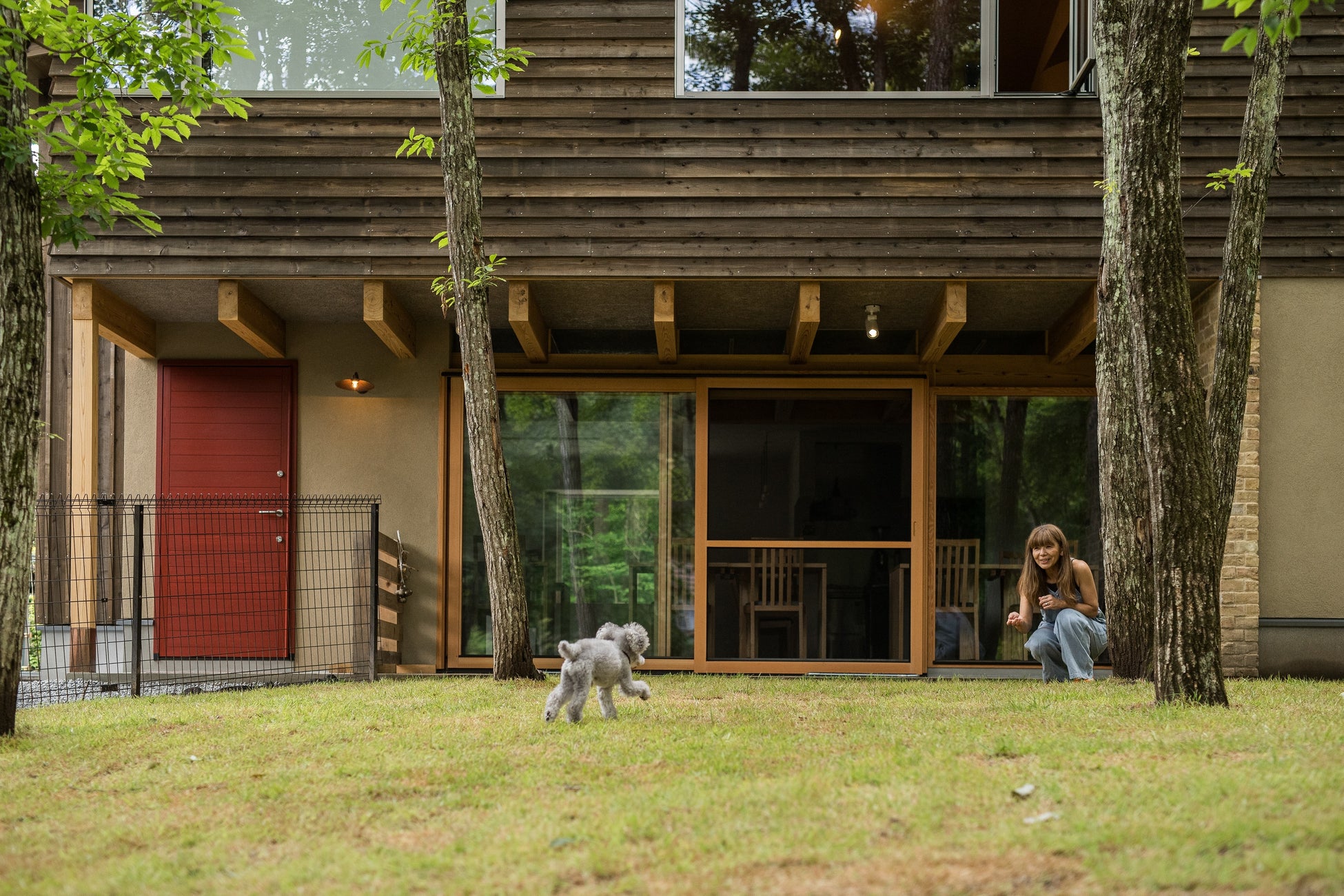 「犬と一緒に楽しむ時間」を住まいの中心に据えた、今注目の軽井沢ライフスタイルを体現する建築です。
