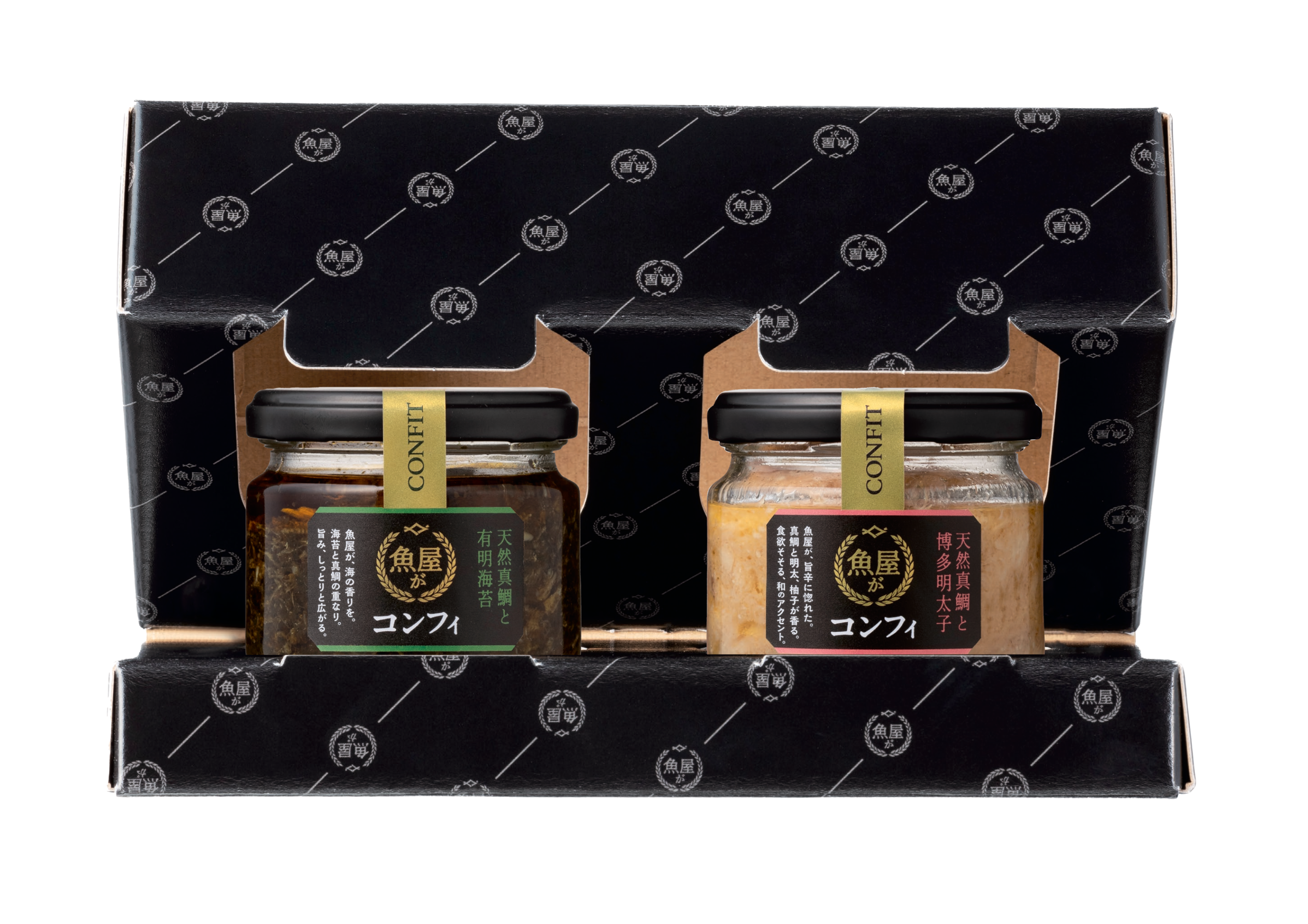 魚屋がコンフィ 天然真鯛と有明海苔、天然真鯛と博多明太子 2本セット(箱入り)