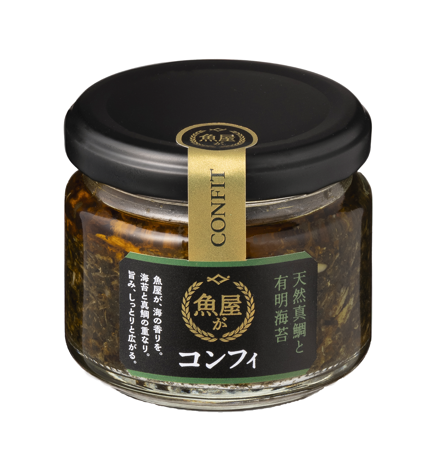 また当社では、冷凍食品にとどまらず、地域の水産資源・特産品の価値をより幅広い形で発信したいという想いから、常温品分野にも新たに挑戦しています。その取り組みの一環として、地域特産品である「有明海苔」を使用した瓶詰商品「魚屋がコンフィ 天然真鯛と有明海苔」、および博多明太子を使用した「魚屋がコンフィ 天然真鯛と博多明太子」を、2025年7月15日(火)に同時発売いたしました。