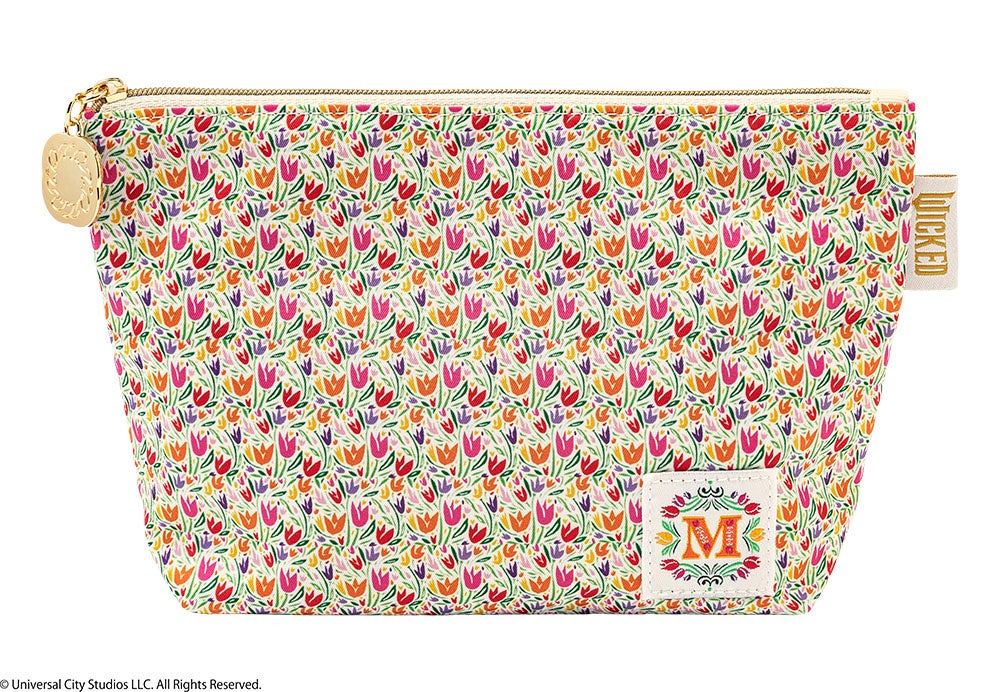 旅行にも活躍してくれそうな巾着は、刺しゅうでロゴやチューリップを咲かせた大人可愛いデザイン。「ウィキッド」タグ付きです。小物が増える季節にとっても便利。