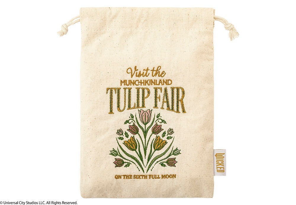 旅行にも活躍してくれそうな巾着は、刺しゅうでロゴやチューリップを咲かせた大人可愛いデザイン。「ウィキッド」タグ付きです。小物が増える季節にとっても便利。
