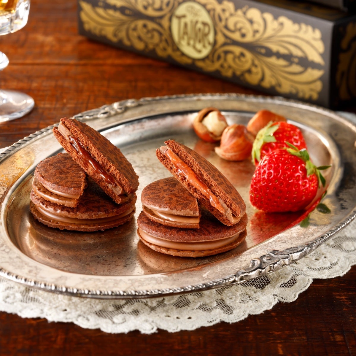チョコレートで女性をエレガントに仕立てるChocolatex Tailorが登場。濃厚なヘーゼルナッツクリームをミルクチョコレートで包みサブレでサンドした「ショコラ」、爽やかな酸味のイチゴペーストをミルクチョコレートで包み、サブレでサンドした「ストロベリー」2種のサンドクッキーをお愉しみ頂けるアソートです。