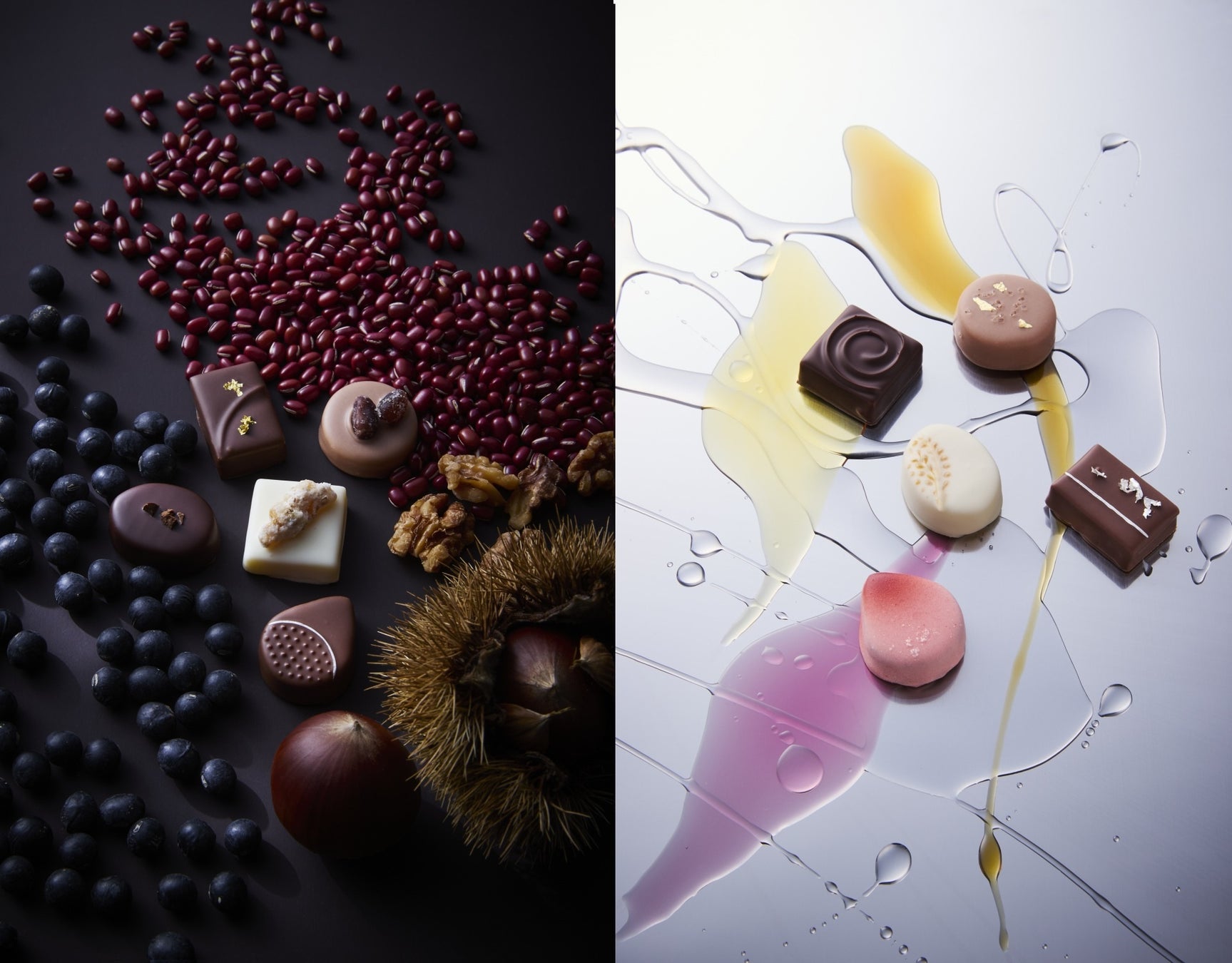 砂糖がけした胡桃や煎った黒豆のトッピング、栗や白胡麻の粒感など、食感にも趣向を凝らし、素材の味わいを引き立てたショコラで日本の実りをご堪能ください。