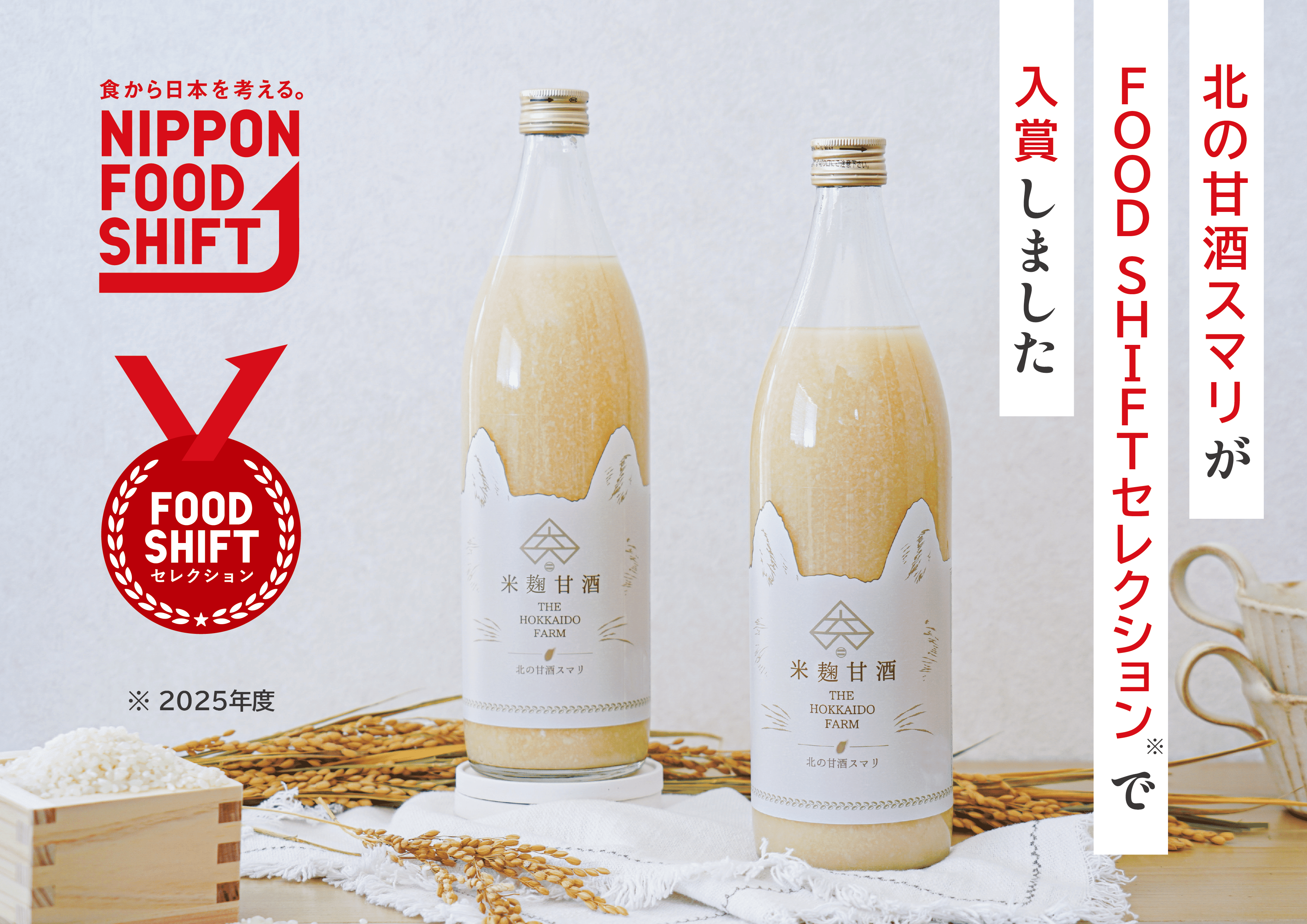 株式会社穴太ホールディングス(本社:千葉県木更津市、代表取締役:戸波亮)が運営するThe北海道ファーム株式会社(以下当社)の商品「北の甘酒スマリ」が、農林水産省が推進するニッポンフードシフト表彰事業『FOOD SHIFTセレクション』(2025年度)において、全国の選定産品の中から “入賞” を果たしました。