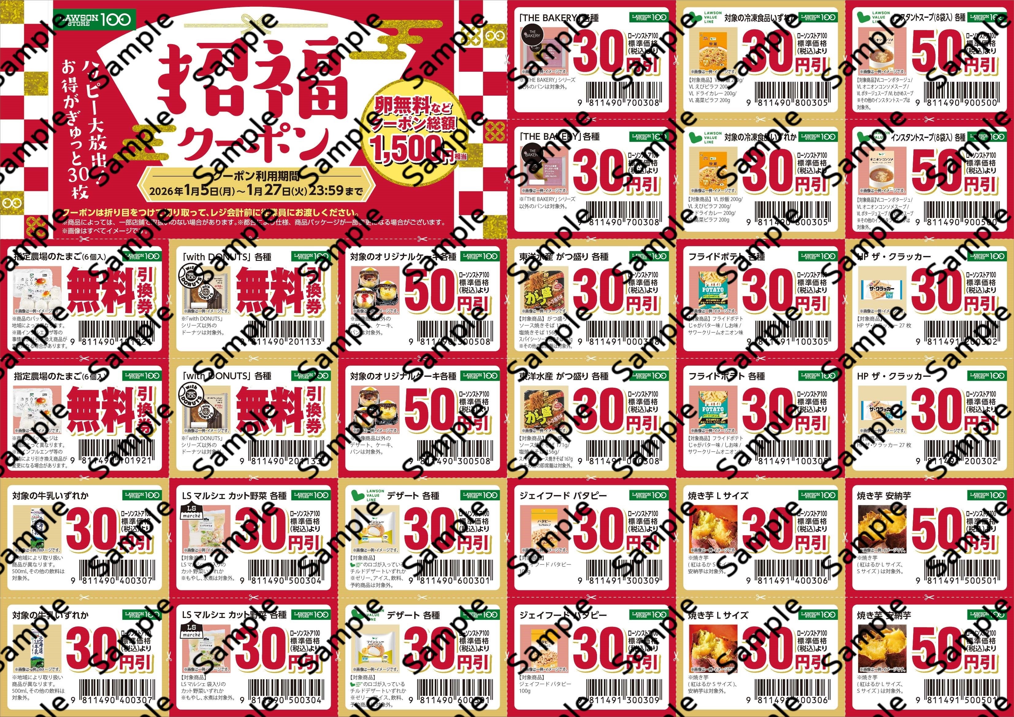 株式会社ローソンストア100(神奈川県川崎市)が運営する「ローソンストア100」(604店舗/2025年11月末現在)は、新ストアコンセプト「あたらしい・おいしい・うれしい」の一環として、2026年1月1日(木)0時から、「初売りセール」を開催いたします。期間中は、年始限定のクーポンチラシ入り福袋をはじめ、大容量菓子などのお買い得商品を取り揃え、新年のスタートをお得に応援します。