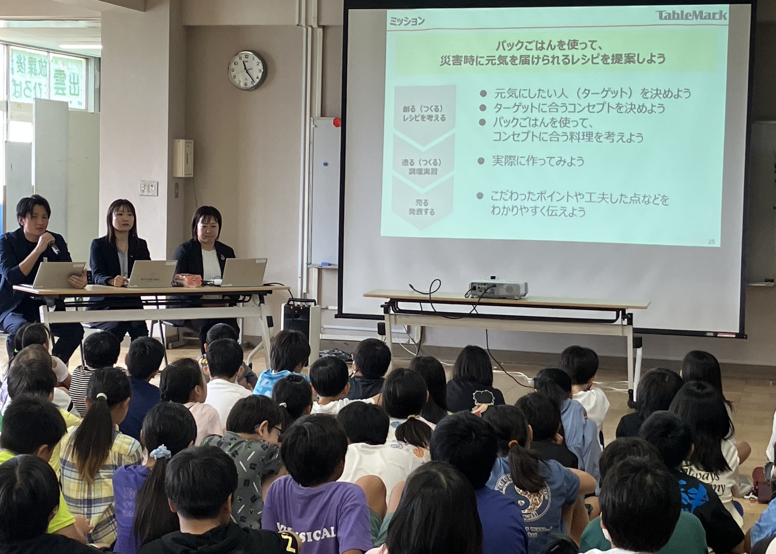 テーブルマーク株式会社(本社:東京都中央区、代表取締役社長:松田要輔)は、食育施策の一環として、12月10日(水)に大田区立出雲小学校にて「元気が出る災害時の食」について考える連携授業を実施しました。