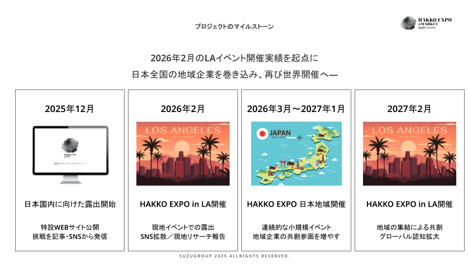 SUZU GROUP主催2026年2月21日~23日の三日間「HAKKO EXPO & MARKET in LA 2026」を開催することをお知らせします