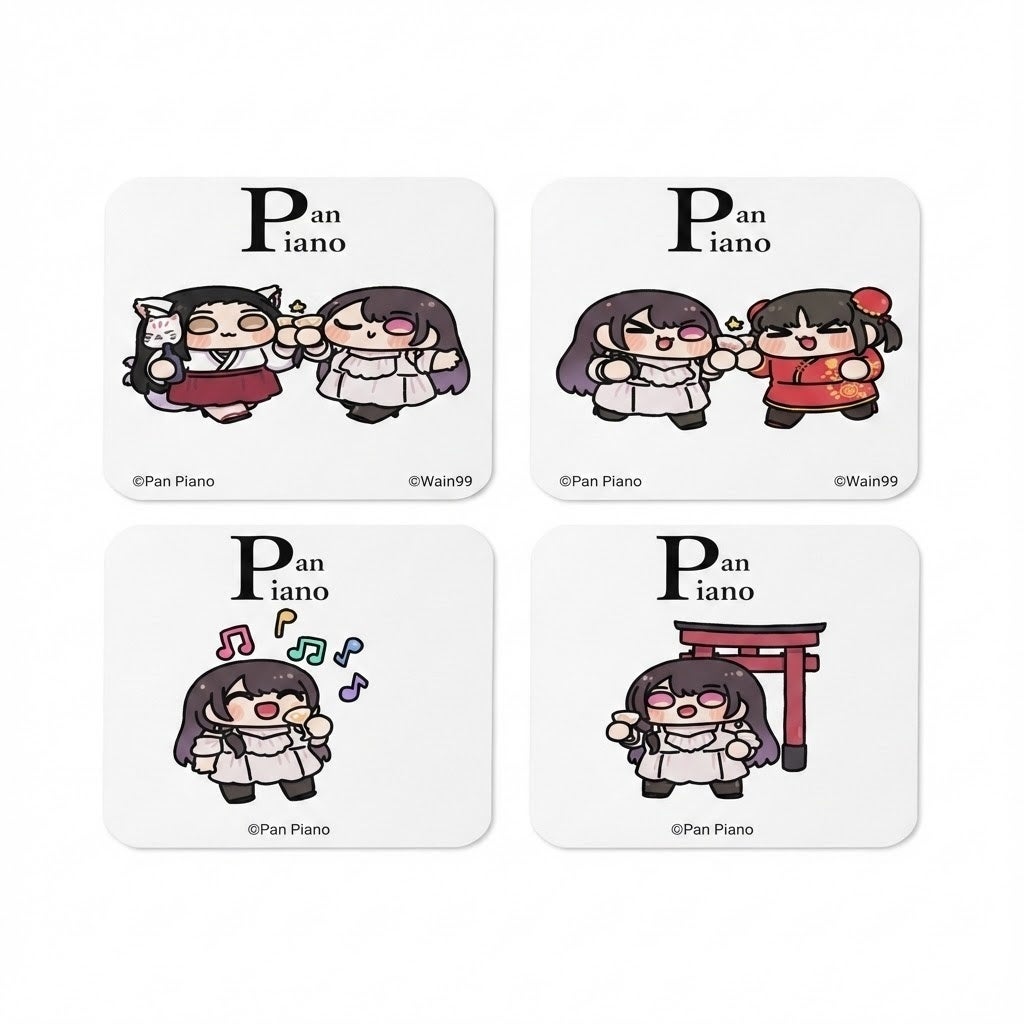 絵馬ストラップおよびコースターに登場するちびキャラは、台湾在住イラストレーター・FuwaFuwa先生による描き下ろしです。小さなキャンバスの中に、Pan Pianoさんの可愛らしさとACG的な遊び心をぎゅっと詰め込んだデザインで、日台コラボらしいポップな世界観を支えています。
