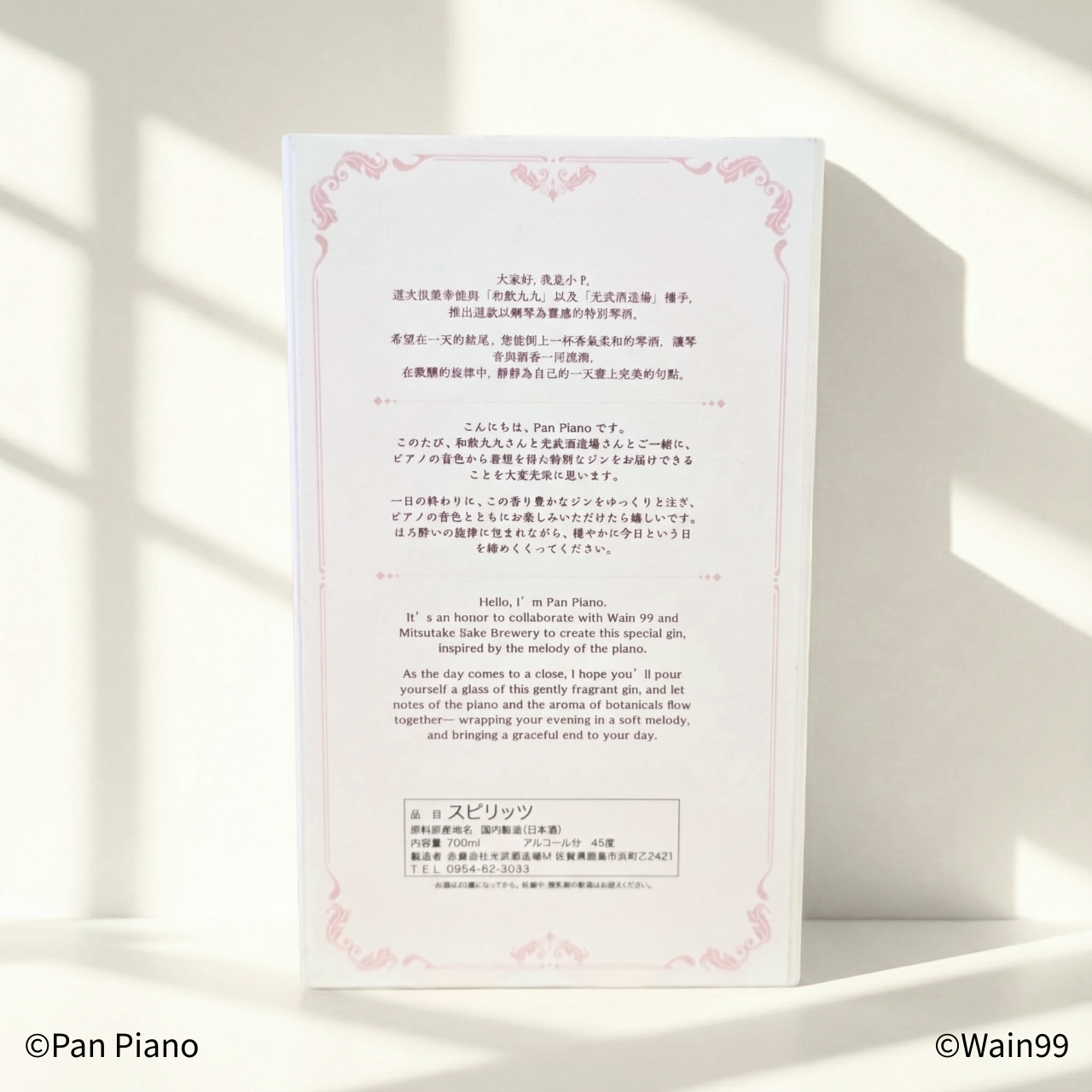 ボトルラベルおよび豪華化粧箱には、イラストレーター・桜ひより先生による描き下ろしイラストを採用。柔らかな色彩と繊細なタッチで、Pan Pianoさんの世界観と赤鳥居ジンの雰囲気を上質に表現しています。棚に並べても、デスクに飾っても絵になる“見せたくなる一本”に仕上がりました。