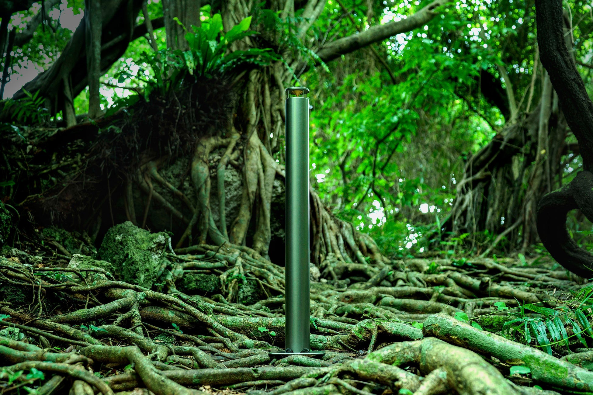 ⾳質を求めた結果たどり着いた、柱状のフォルムが特徴。1つのスピーカーユニットで広い⾳域を出⼒し、頂点の反射板を使って周囲へと⾳を拡げていきます。
