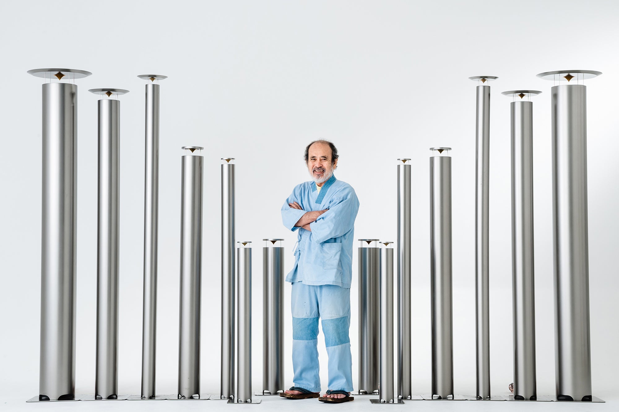 ⾳質を求めた結果たどり着いた、柱状のフォルムが特徴。1つのスピーカーユニットで広い⾳域を出⼒し、頂点の反射板を使って周囲へと⾳を拡げていきます。