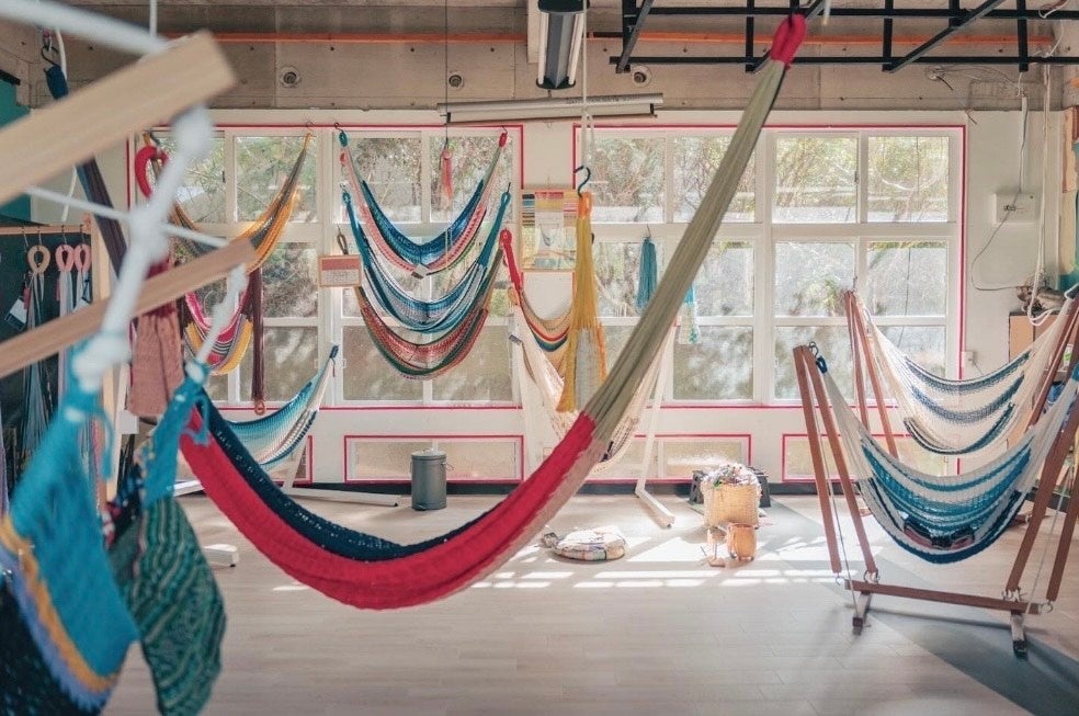 木と木に結び、柔らかなベッドに包まれていると、すーっと自然の中に溶け込んでいきます。