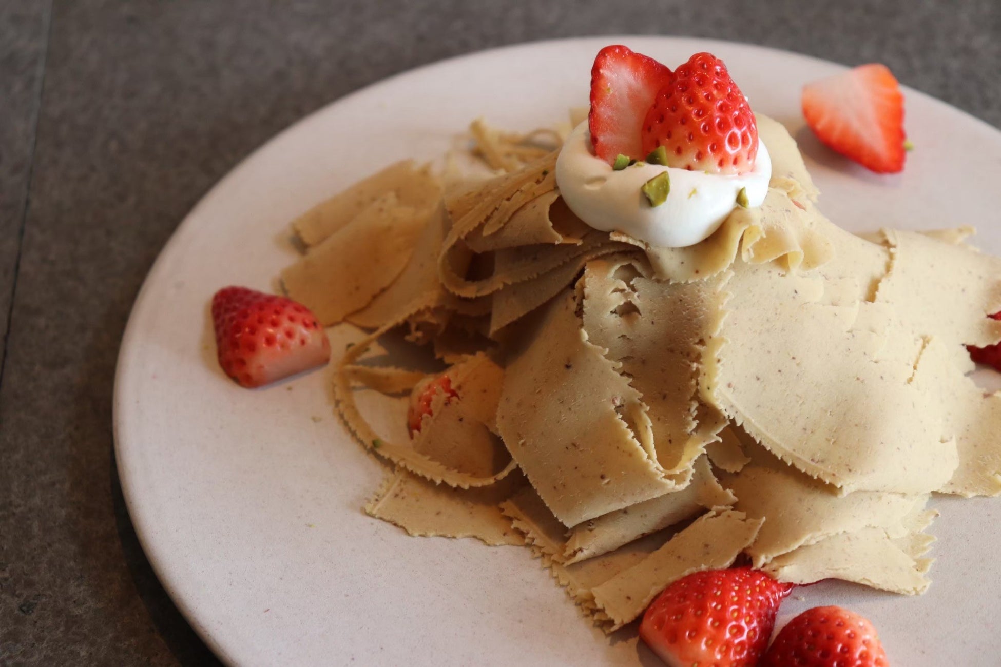 いちごの赤、ピスタチオの緑、そして全体を包み込む和栗の穏やかな色味が調和した、見た目も美しいタルトに仕上げました。