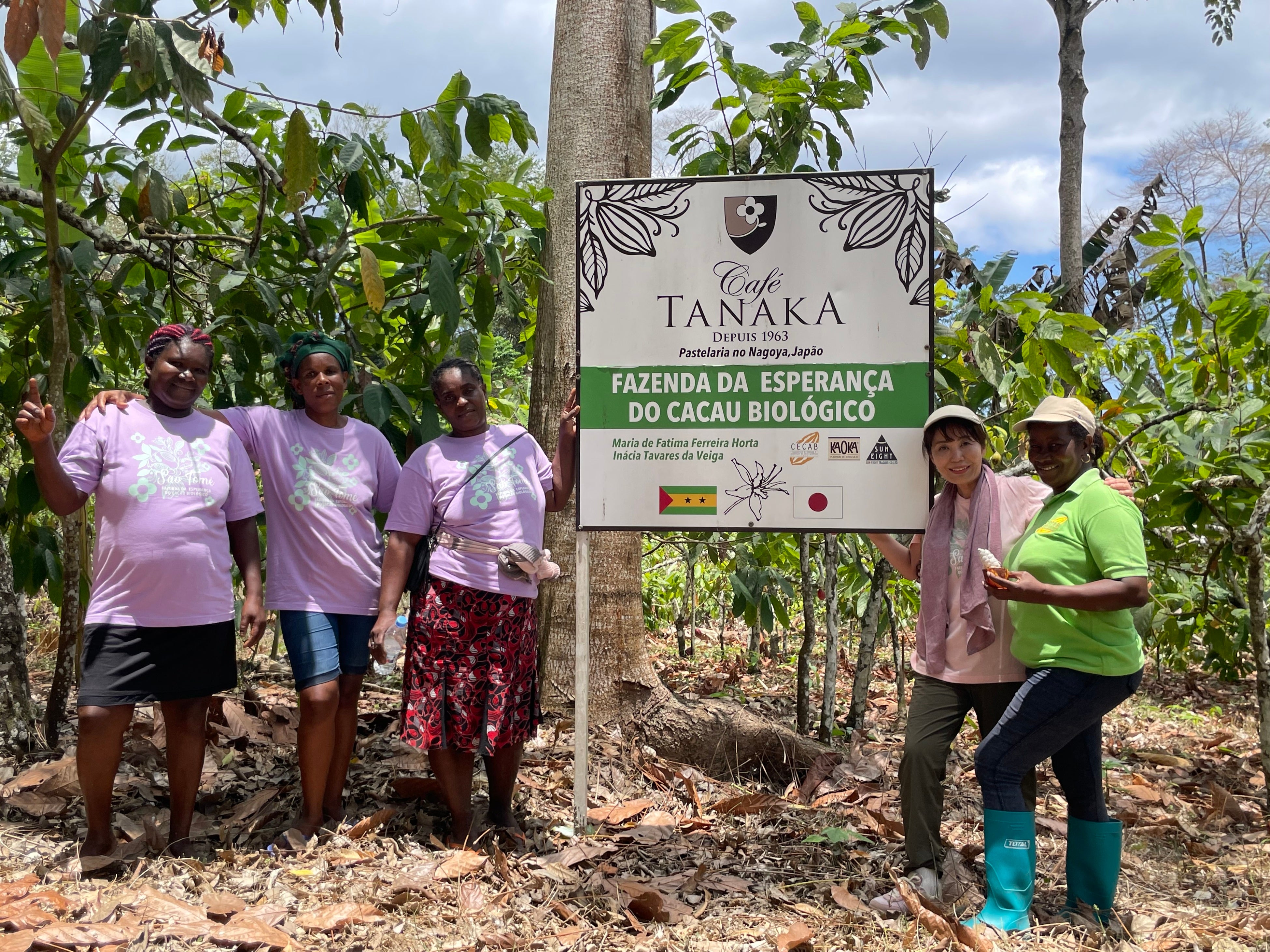 カフェタナカは2019年西アフリカのサントメ島に自社管理の「カフェタナカ希望の有機カカオ農園」を開園。荒廃したカカオ農園の再生に力を入れると同時に、現地で働く女性たちの自立に寄り添う支援「サントメプロジェクト」を続けています。