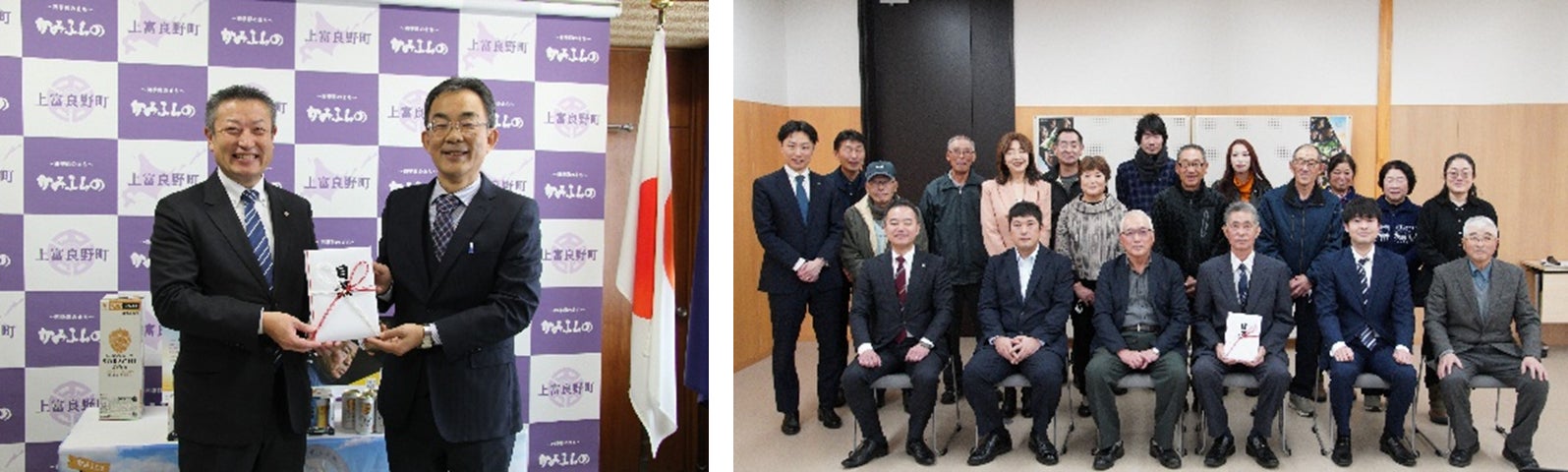(左) 上富良野町 謹呈式(右)岩手県北ホップ農業協同組合 謹呈式