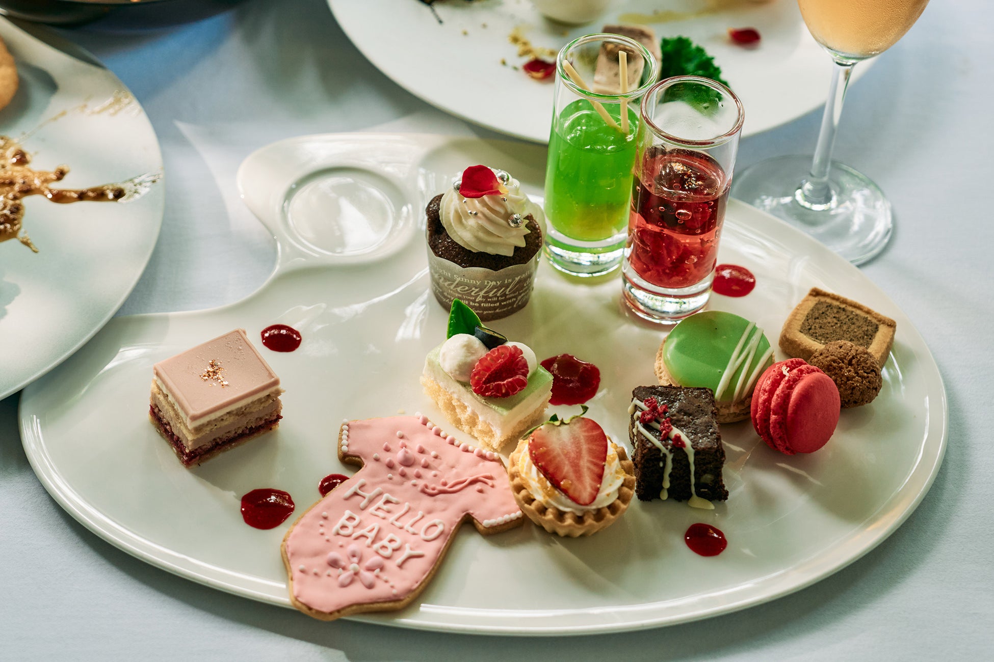 ベビーシャワーセレブレーションプランは、お食事メニューの異なる3種類のコースに加え、平日限定で装飾を省いた、カジュアルにお楽しみいただけるコースを含む全4プランでご用意いたします。シェフ特製の彩り豊かなオードブルアソートや、赤ちゃんをモチーフにした愛らしいアイシングクッキーなどもあわせてお楽しみいただけます。