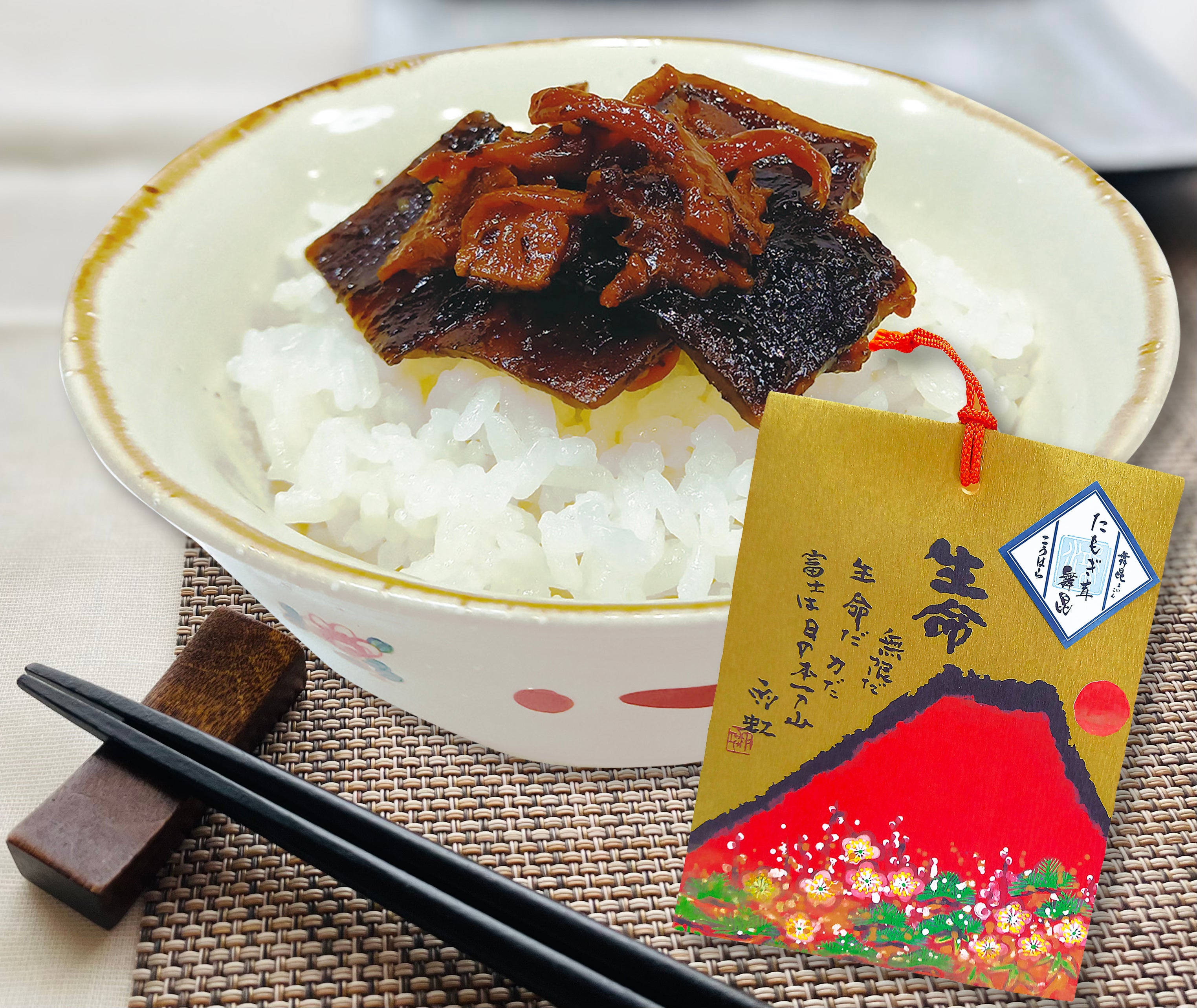 「たもぎ茸舞昆」:シリーズ一番人気。幻のキノコの旨みが濃厚。