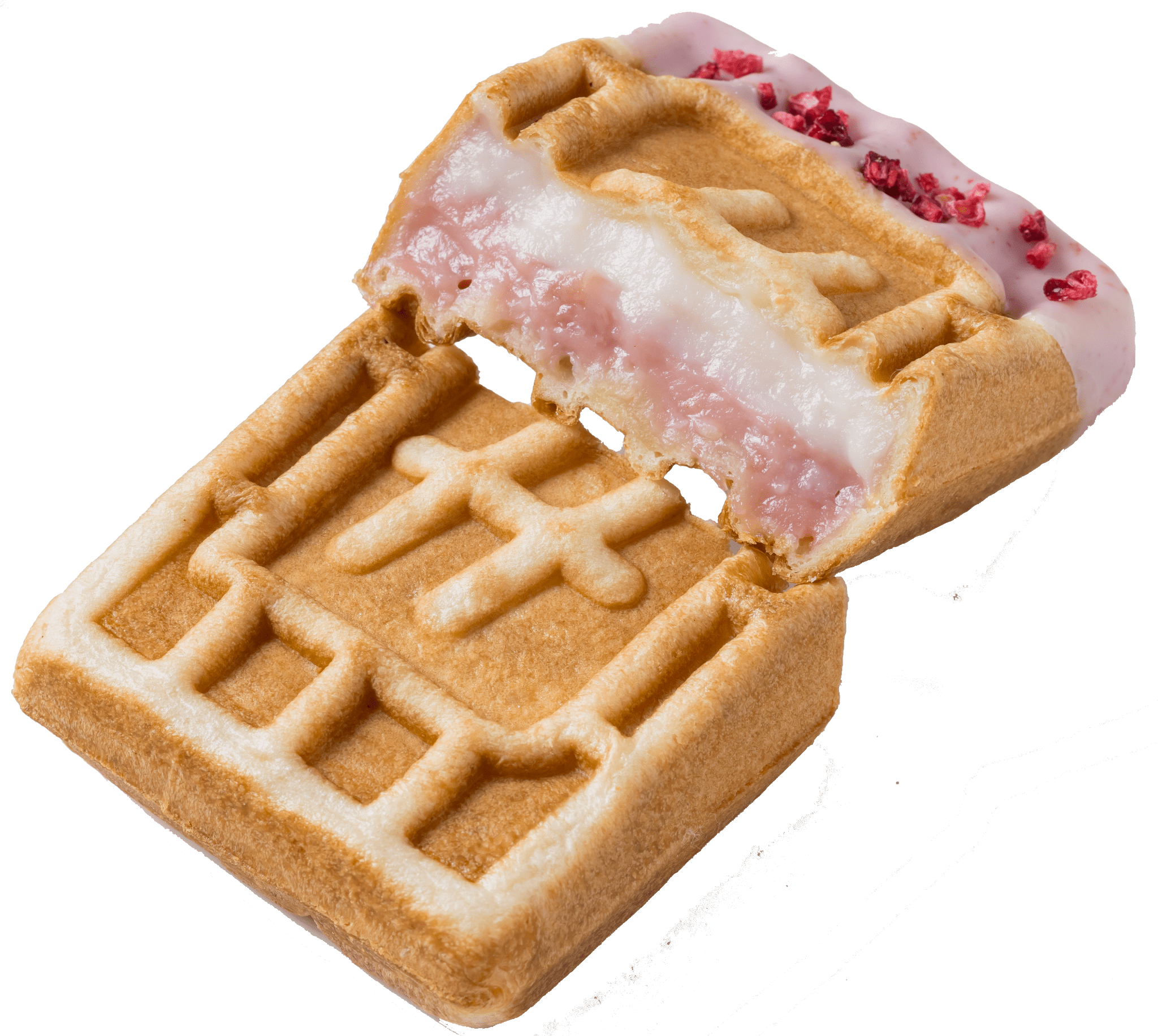 リエージュワッフル『アップルシナモン』は、北海道産発酵バターを使った生地に甘酸っぱいドライりんごを練り込み、仕上げにシナモンシュガーをまぶしました。寒い日にぴったりのホッとする味わいのワッフルです。ハッシュルワッフル『いちごマスカルポーネ』は、ダイス入りいちごクリームとマスカルポーネクリームを包んで焼き上げ、果肉入りのいちごチョコとラズベリーで仕上げた、冬に華やかなワッフルです。