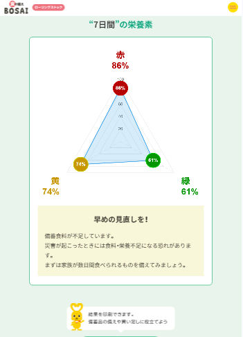 各家庭に必要な備蓄量や家庭内にある食品の栄養バランスを把握することで、食料備蓄率の向上や栄養バランスに配慮した備蓄につながればと考えています。