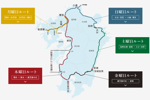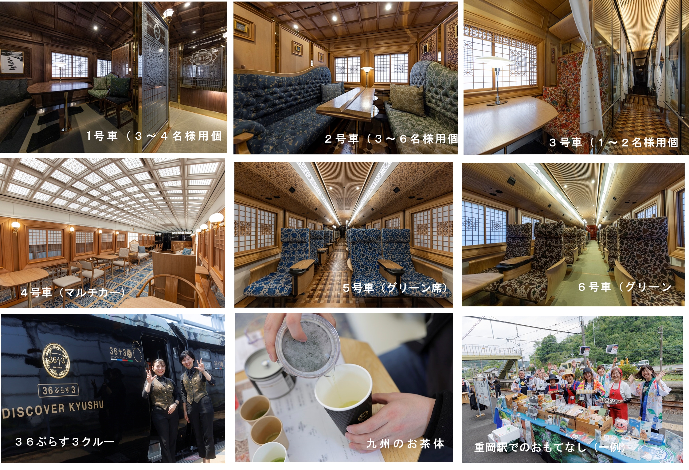 2026 年5月11日(月)運行分までは、以下の概要でご予約を承ります。 この機会に九州の歴史、風土、人など、九州のすべてが、ぎゅーっと詰まった“走る九州”「36ぷらす3」 での旅をお楽しみください。