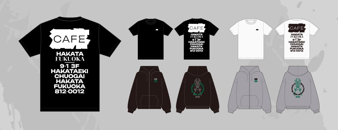 洒落(博多ver)のおりT作ったよTシャツは新ロゴを手掛けたNKCN氏、オリジナルパーカーは独創的な世界観で支持を集めるイラストレーター/グラフィックデザイナーとして活動するスドウ創太氏(X@sota_96)がそれぞれ制作を担当。両アイテムは店頭での販売も行い、カフェの枠を超えたストリートカルチャーを提案します。