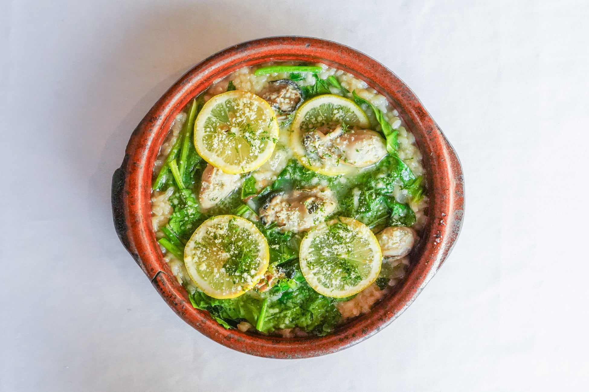 レモンを効かせたスープのスペイン風雑炊「カルドソ」。スープをたっぷり含んだお米が体を芯から温めてくれます。チーズをたっぷりかけ、洋風に仕上げたカルドソは、寒い季節にぴったりな一皿です。