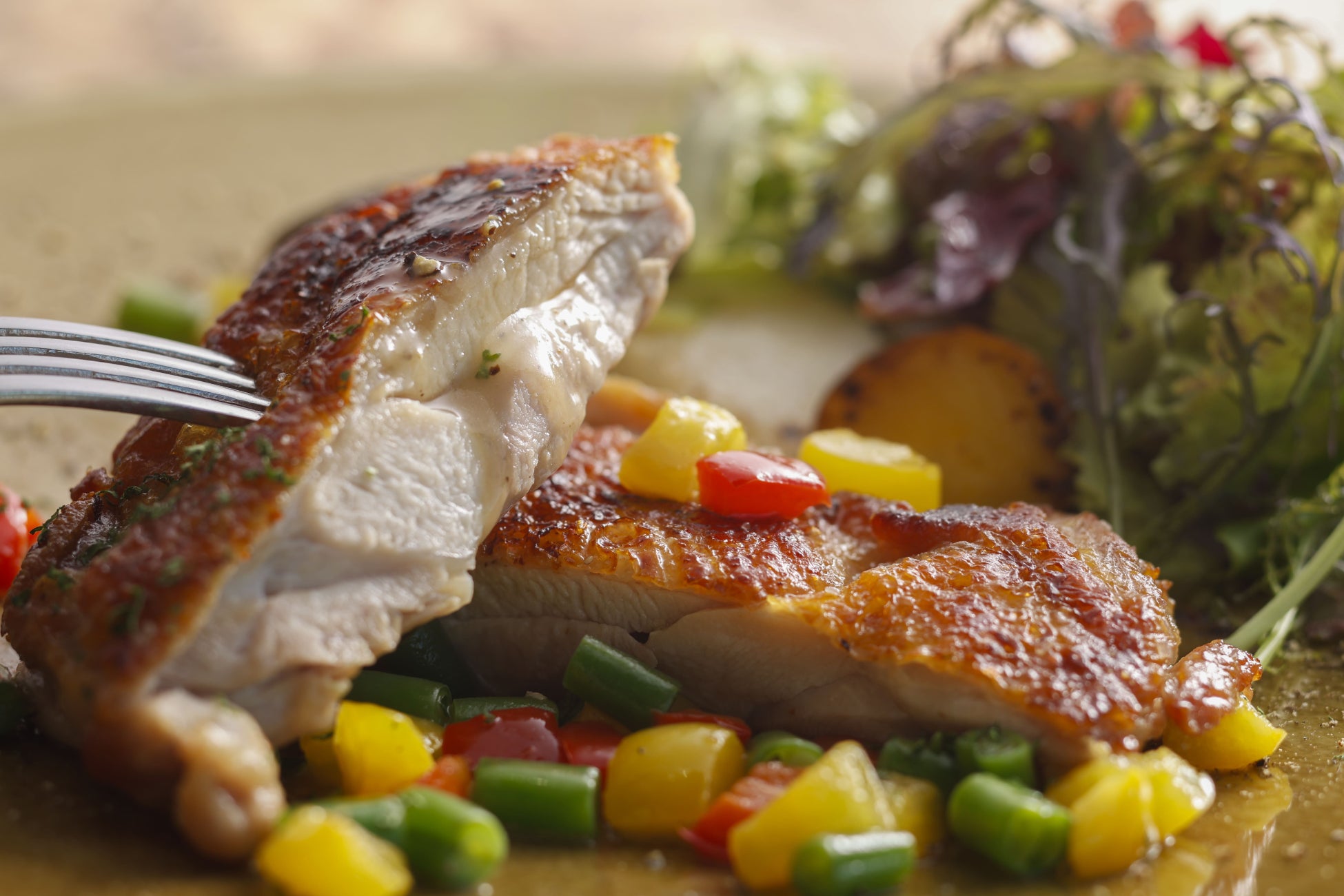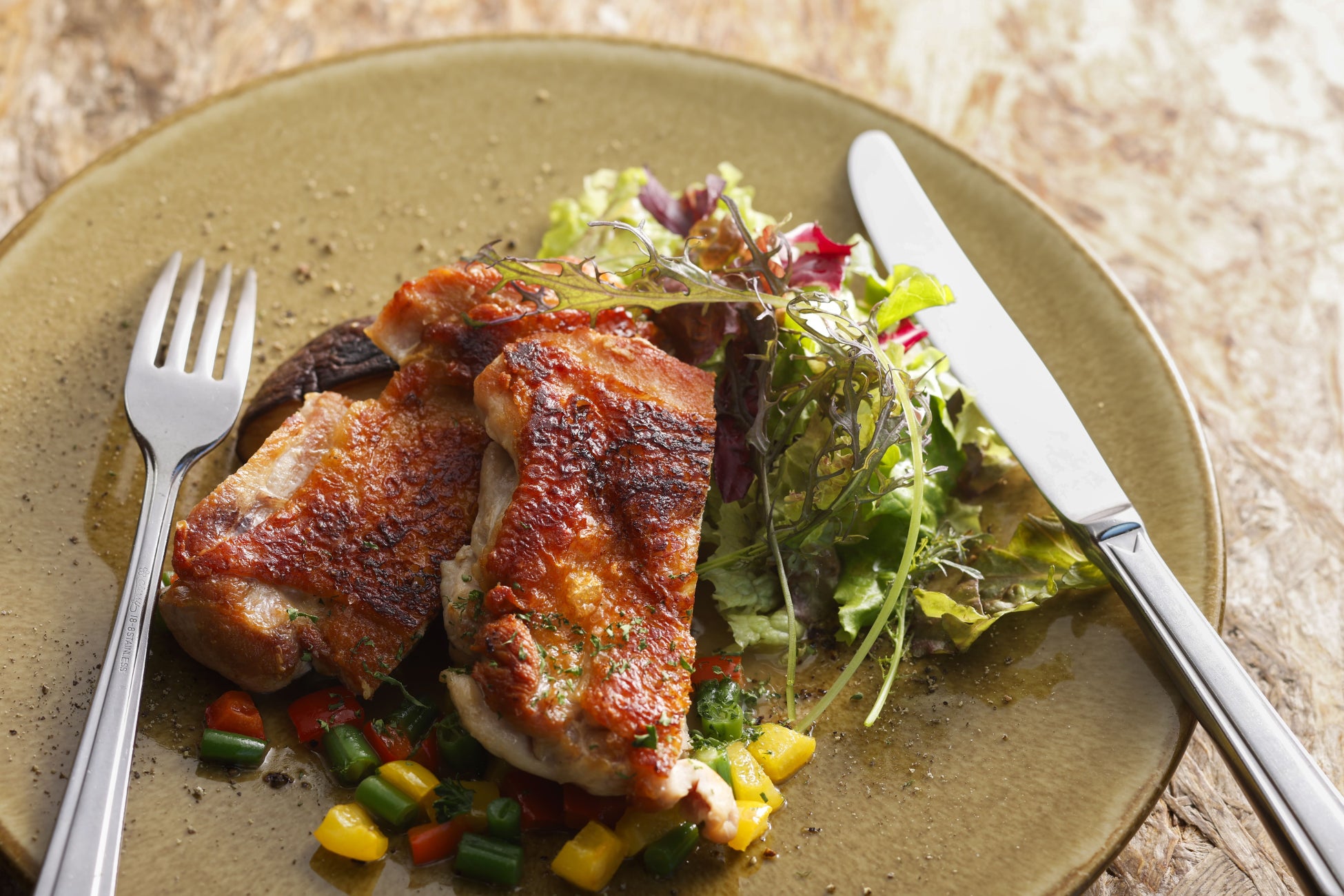 皮目はじっくりと時間をかけて焼き上げ、香ばしくパリッとさせました。