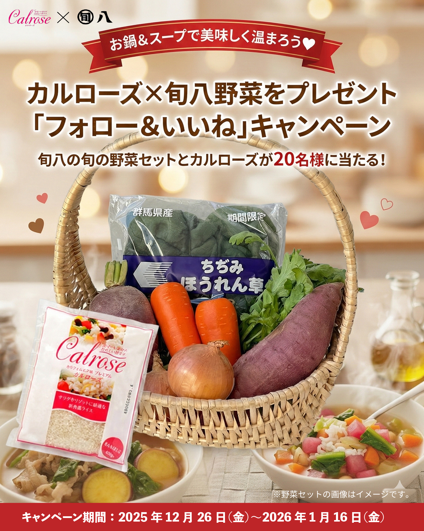 カリフォルニア生まれのお米「カルローズ」の認知拡大とプロモーション活動を展開するUSAライス連合会日本代表事務所(本部:米国バージニア州)は、軽い食感が特長のカリフォルニア米「カルローズ」と、旬八青果店が厳選した「旬の野菜セット」、「レシピブック」のセットが抽選で20名に当たるコラボキャンペーンを開催します。