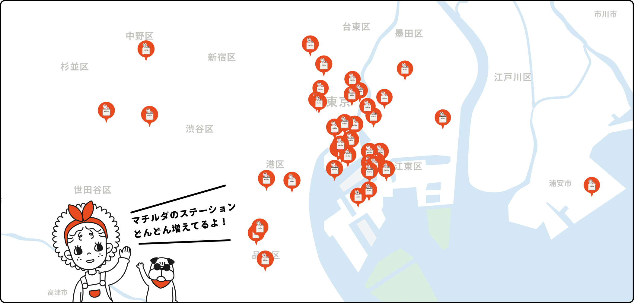 2021年5月にサービスを開始して以来、マチルダは「毎日の夜ごはんがちょっと楽しみになる」家庭料理を、忙しい子育て世帯や共働き世帯の皆さまにお届けしてまいりました。2024年9月に20ステーションを突破してから約1年で、ステーション数は40箇所規模へと成長しました。これまでマチルダを展開できていなかった、西側エリアへの展開も進めています。