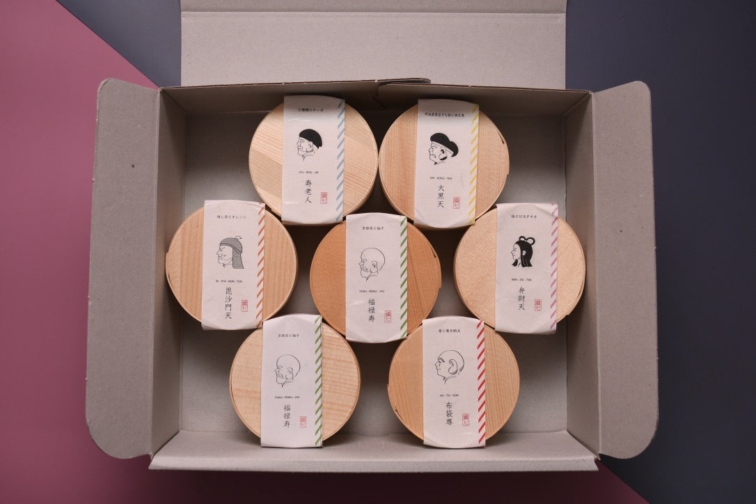 当店は、京都嵐山で2023年に開店し、今年で開店2年目になる嵐山プリン専門店福七(fukushichi)です。当店は、京都嵐山で2017年に創業し、今年で創業8年目になる京綿菓子専門店zarame(ザラメ)の系列店です。当店のプリンは、白餡をベースにし和洋折衷の和菓子のような新食感プリンです。ひとつ一つのプリンに七福神の名前が付いており、経木に入った見た目にも素敵な7つの神様が入ったプリンセット「宝船」をお正月限定企画として新発売します(1月1日~1月15日)。7種類のプリンは、それぞれ、恵比寿天(プレーン)、福禄寿(京抹茶と柚子)、大黒天(京丹波産黒豆きな粉とイチヂク)、毘沙門天(ほうじ茶とオレンジ)、寿老人(3種類のチーズ)、弁財天(桜とピスタチオ)、布袋(イチゴと鴬甘納豆)です。お正月にご家族やご友人とシェアしたり、大切な方への贈り物に、自分へのご褒美として、新商品「宝船」をどうぞご賞味下さい。販売は、店頭、お電話、ECサイト。