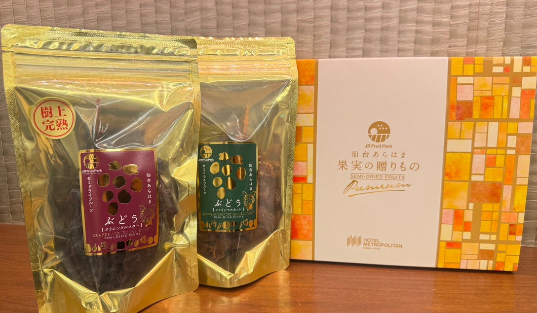 【2025年12月】ホテルメトロポリタン仙台(所在地:仙台市青葉区、総支配人:林 健一)は、JRフルーツパーク仙台あらはまによる六次産業化の取り組みの一環として、同施設の自社農園で丹精込めて栽培された「樹上完熟ぶどう」を使用したセミドライフルーツの販売を開始いたします。