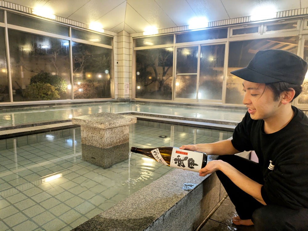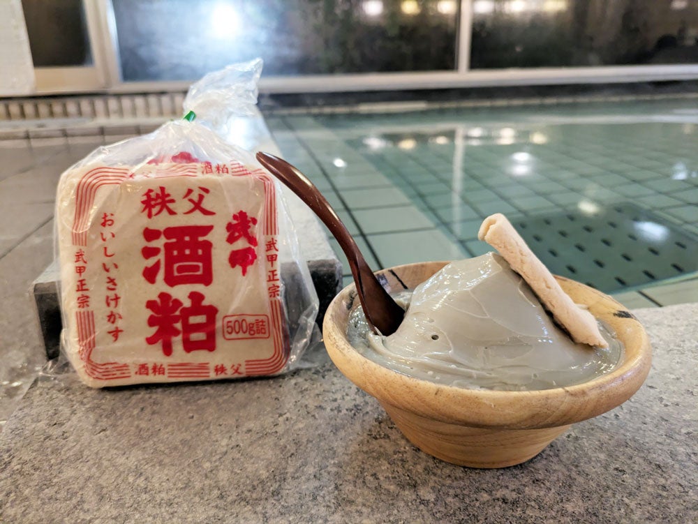<武甲温泉 新年の日本酒風呂、酒粕泥パック>