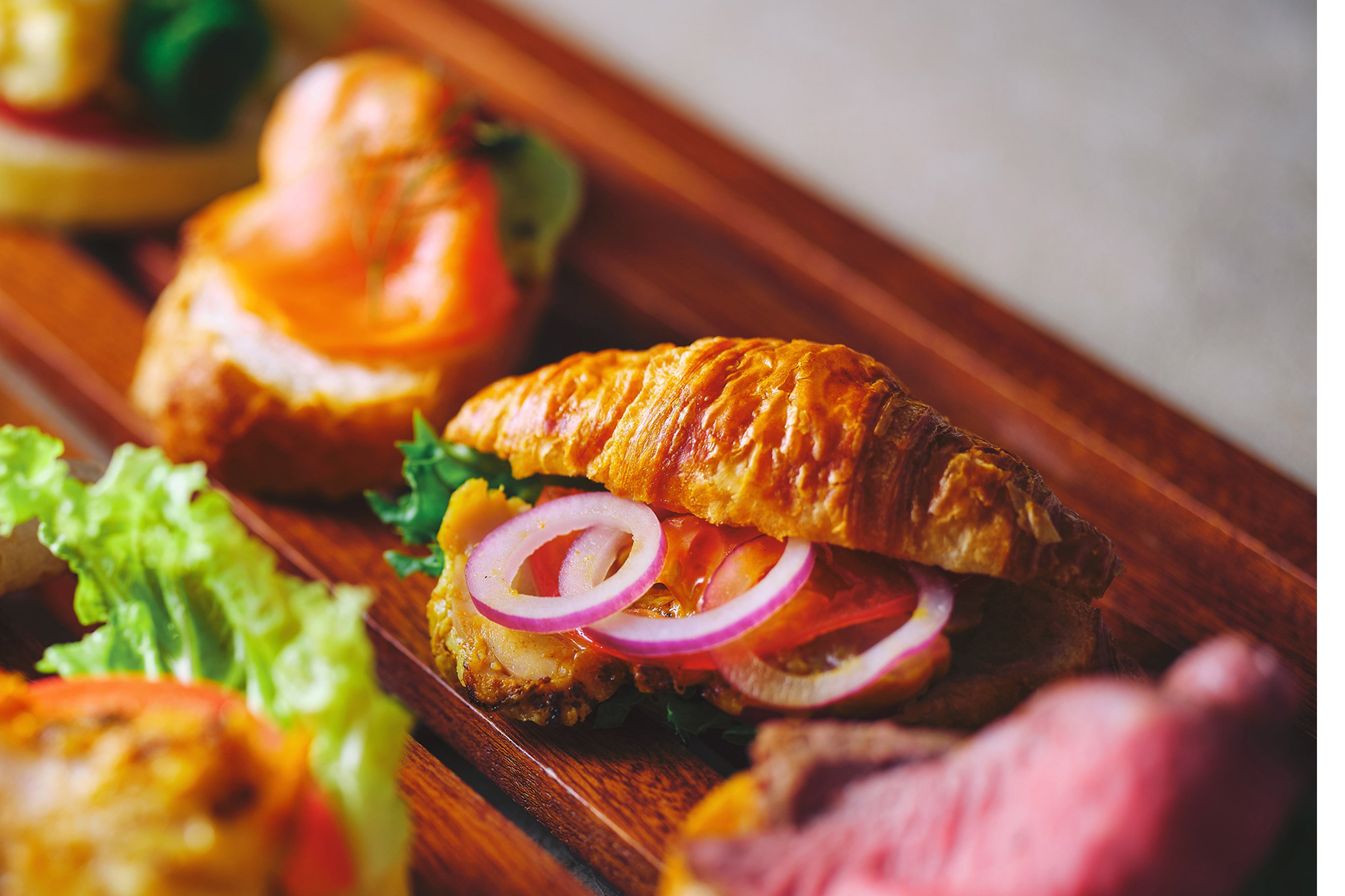 ローストビーフ / 生ハム / スモークサーモン / クロワッサン / ハンバーグ / ポテト など