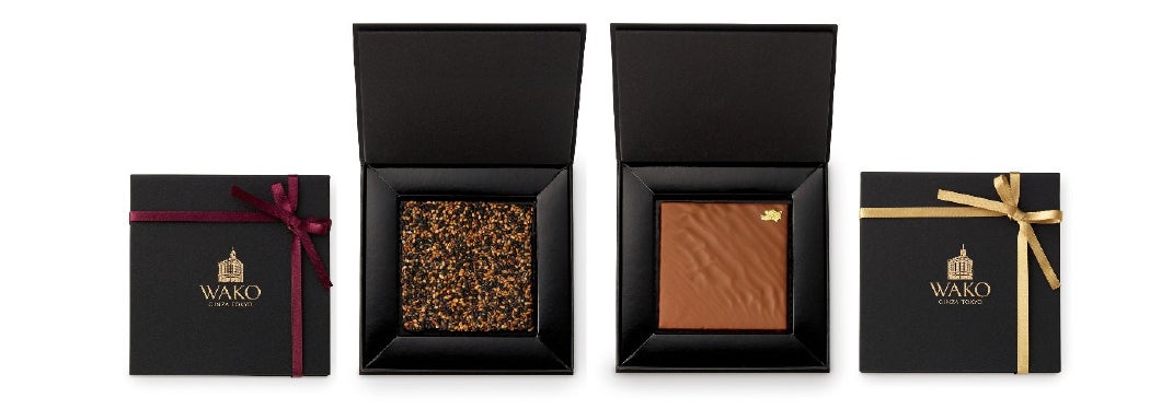 タブレットショコラは、カカオの物語を一枚に閉じ込めた一品です。「タブレット ゴマ」は、深いビターの後に希少な国産ゴマの香ばしい風味が口いっぱいに広がり、カカオの力強い余香とともに静かな幸福感をもたらします。「タブレット アマンド ユズ」は、ミルクの柔らかな甘みで、まるで上質なシルクに包まれるような余韻を演出。後から国産ユズの香りが広がり、金箔で華やかに仕上げました。