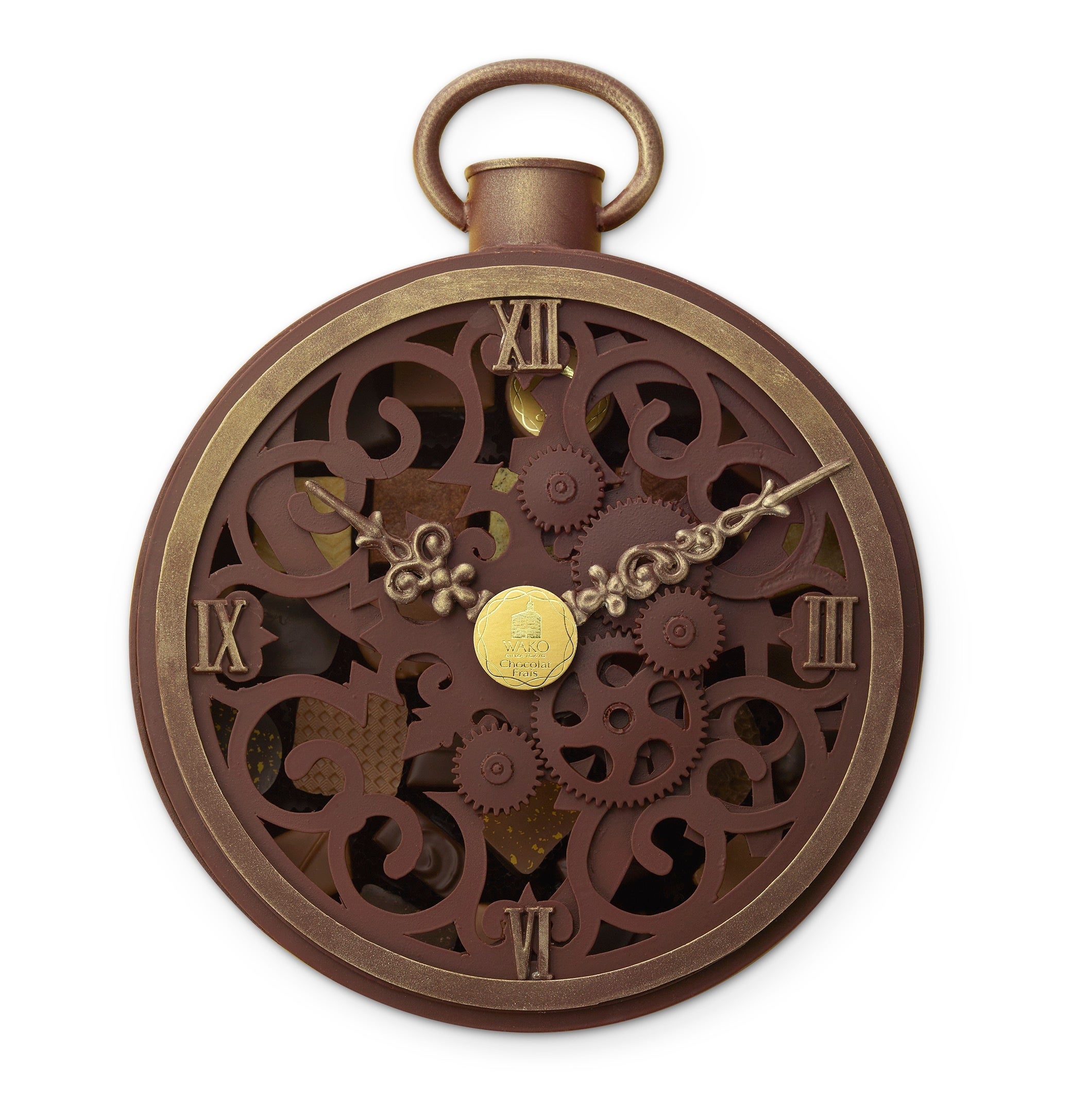 アルチザン ドゥ タンはフランス語で「時の職⼈」。 同じく職⼈が⼿がける懐中時計をイメージした、チョコレート細⼯です。精巧な⻭⾞やアラベスク模様をモチーフにした装飾の⽂字盤までお召し上がりいただけるチョコレートで表現し、開くと定番のショコラ・フレに加え、今季限定フレーバー「アロマ ジャポネ」、「SHIKI ショコラ・フレ−FUYU−」を含む29粒を贅沢に詰め合わせました。特別な季節にふさわしい、遊び⼼と技が光る驚きのひと品です。