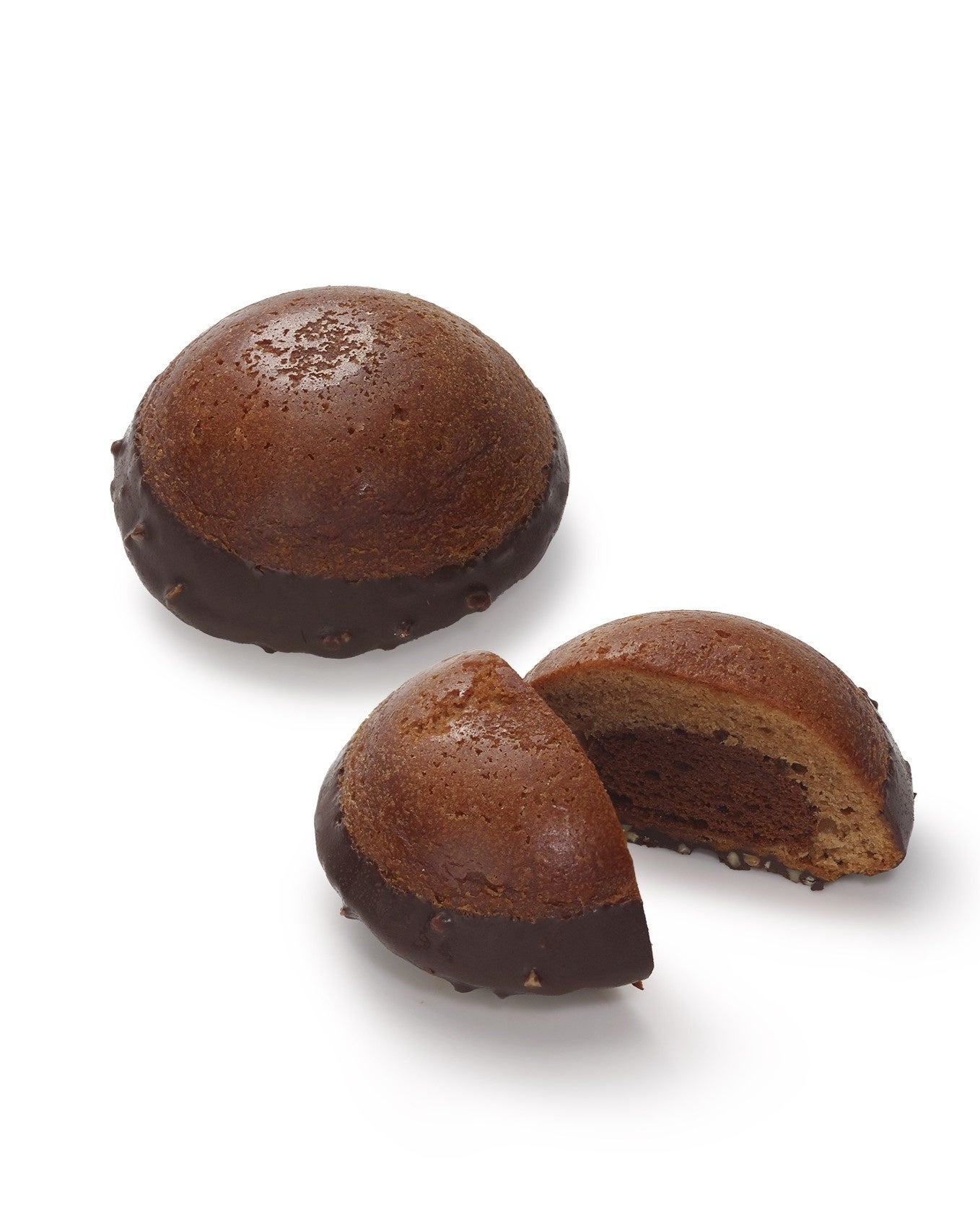 しっとりとしたショコラ生地に、ふわりと溶けるスフレショコラを閉じ込めた新作の焼菓子です。周りにはアーモンドダイス入りチョコレートをぐるりと付けて豊かな食感に仕上げました。