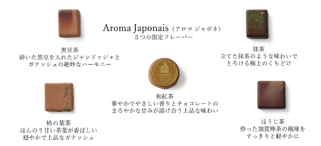 このたび、2026年1⽉15⽇(⽊)より、職⼈の技とこだわりが息づく“Chocolat Artisan(ショコラ アルチザン*)”と題したフェアを開催します。今回ご紹介する今季限定の新コレクションは「Aroma Japonais(アロマ ジャポネ)」がテーマ。⽇本で育まれた5種類の茶葉と出合うことで⽣まれた新たな味わいは、⼿仕事だからこそ実現できるフレッシュな⾵味と繊細な⼝溶け、そして重なり合う和の⾹り。ショコラティエが選び抜いた素材に向き合い、受け継いだ職⼈技を⼤切にしながら⽣み出された新たなフレーバーをお楽しみください。