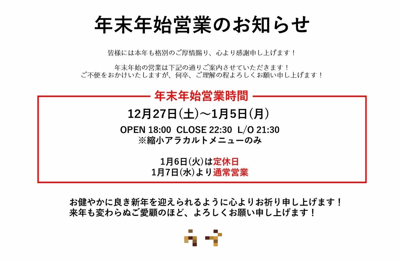 営業時間:月・火・水・木・金・祝日・祝前日・祝後日 18:00 – 01:00