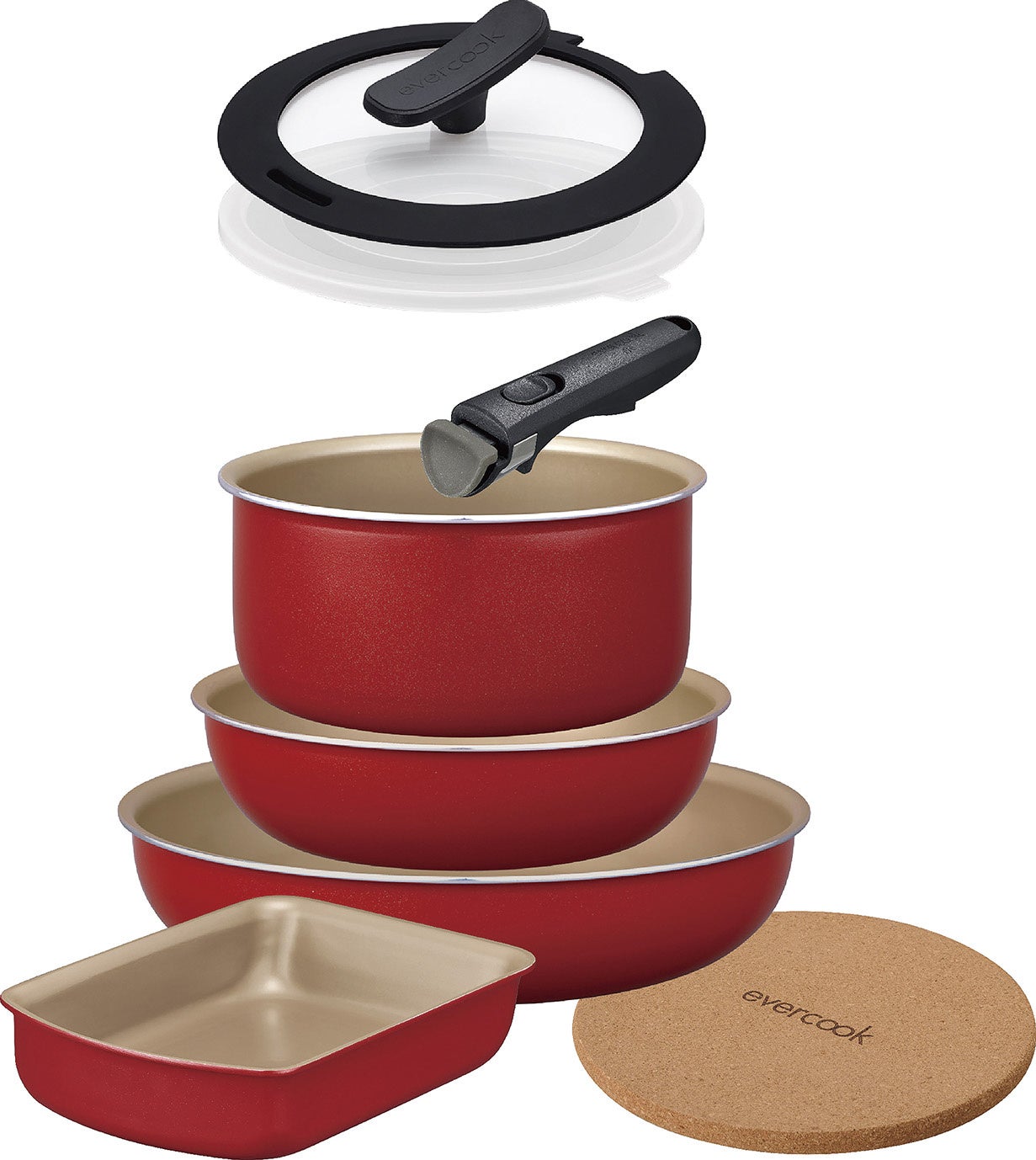 ・DOSHISHA IH対応エバークック 8点セット レッド