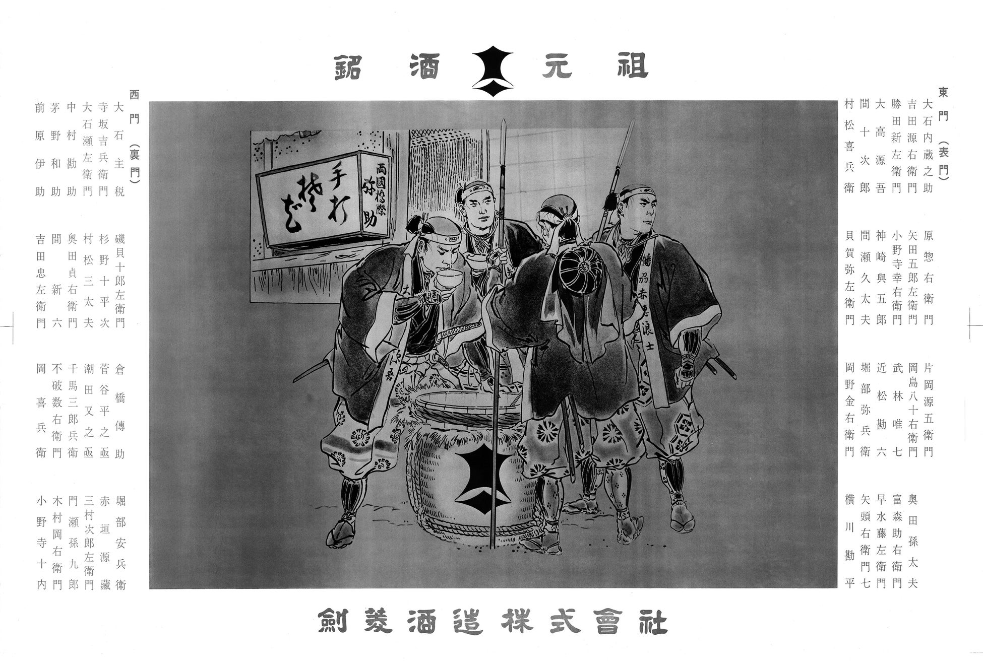 江戸時代より人気を誇った歌舞伎演目『仮名手本忠臣蔵』では、赤穂浪士の出陣酒として剣菱が登場したとされています。『忠臣蔵』に因んだ「義士ようかん」、歌舞伎の演目に由来する「助六弁当」を酒肴に、古の名場面に思いを馳せながら剣菱を味わいます。
