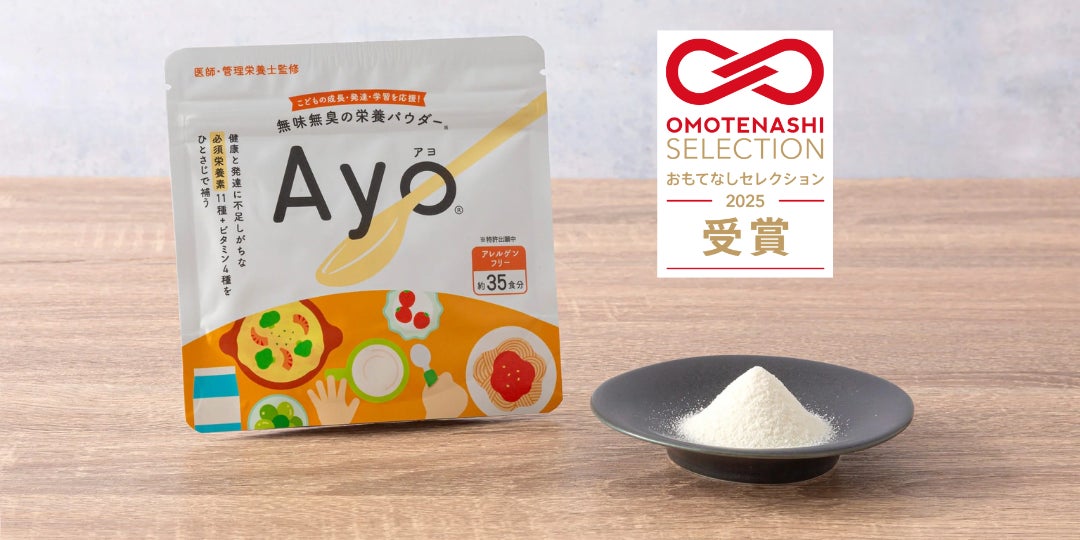 無味無臭の栄養パウダー開発・販売の合同会社ニュートリベース(東京都中央区)は、当社製品「Ayo®」(アヨ)が2025年度 第2期 「おもてなしセレクション」を受賞しました。