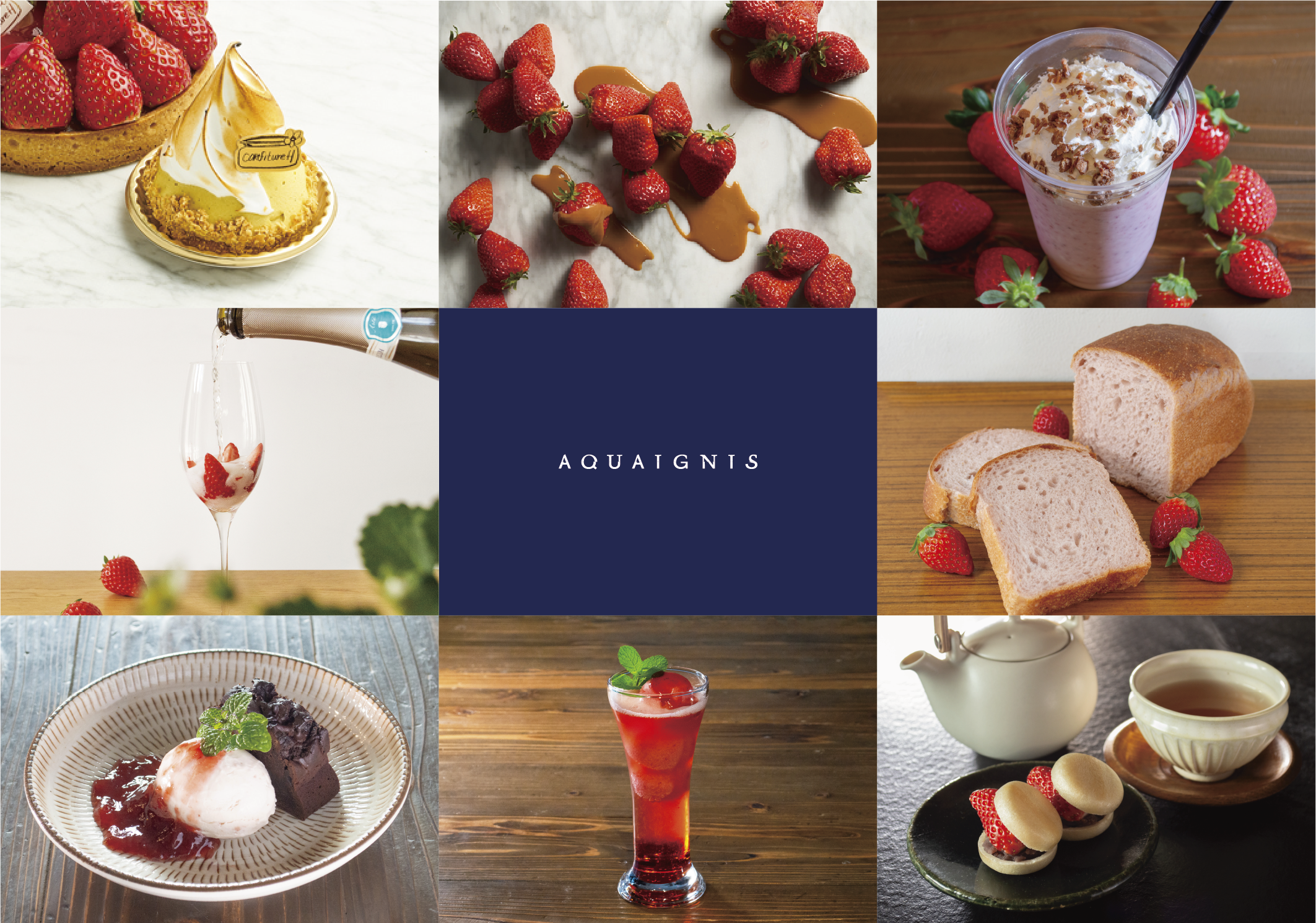 アクアイグニス内の各店舗で、目の前のハウスで採れた完熟いちごを使用した様々なメニューをお楽しみいただけます。開催期間:2026年1月15日(木)~3月31日(火)