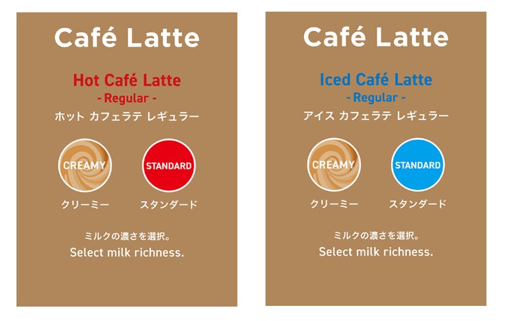 カフェラテマシンのボタンに「スタンダード」に加え、「クリーミー」ボタンが追加され、お客様のお好みでミルクの量が選べるようになりました。
