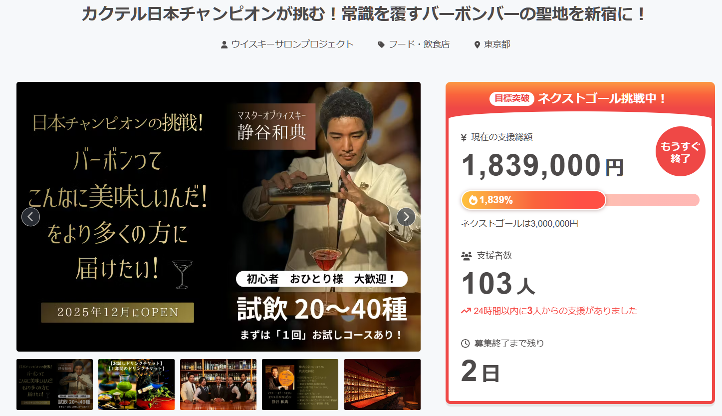 CAMPFIRE 「BAR東京バーボンクラブ」クラウドファンディングページ