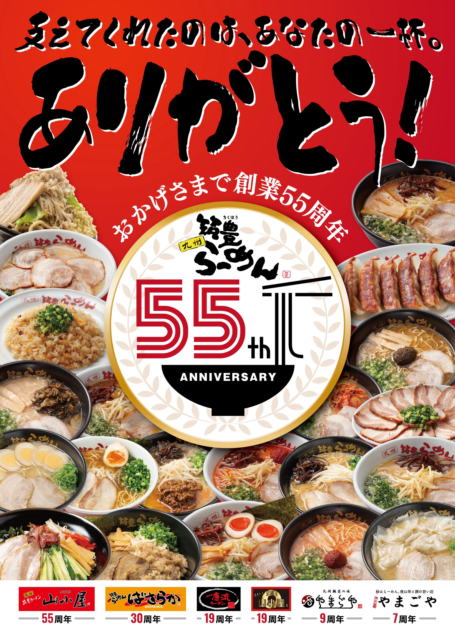 ラーメンチェーン「九州筑豊ラーメン山小屋」を展開するワイエスフード株式会社(本社:福岡県田川郡香春町、代表取締役社長:高田十光、証券コード:3358、以下 当社)は、創業55周年を記念し、イオン九州株式会社(本社:福岡市東区、代表取締役社長:中川伊正、以下 イオン九州)が実施する人気企画「九州ご当地企業コラボ」に参加しています。